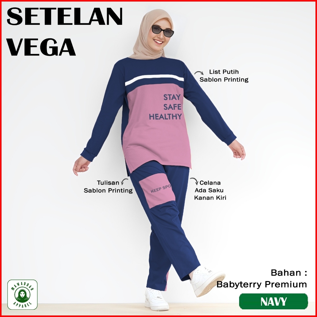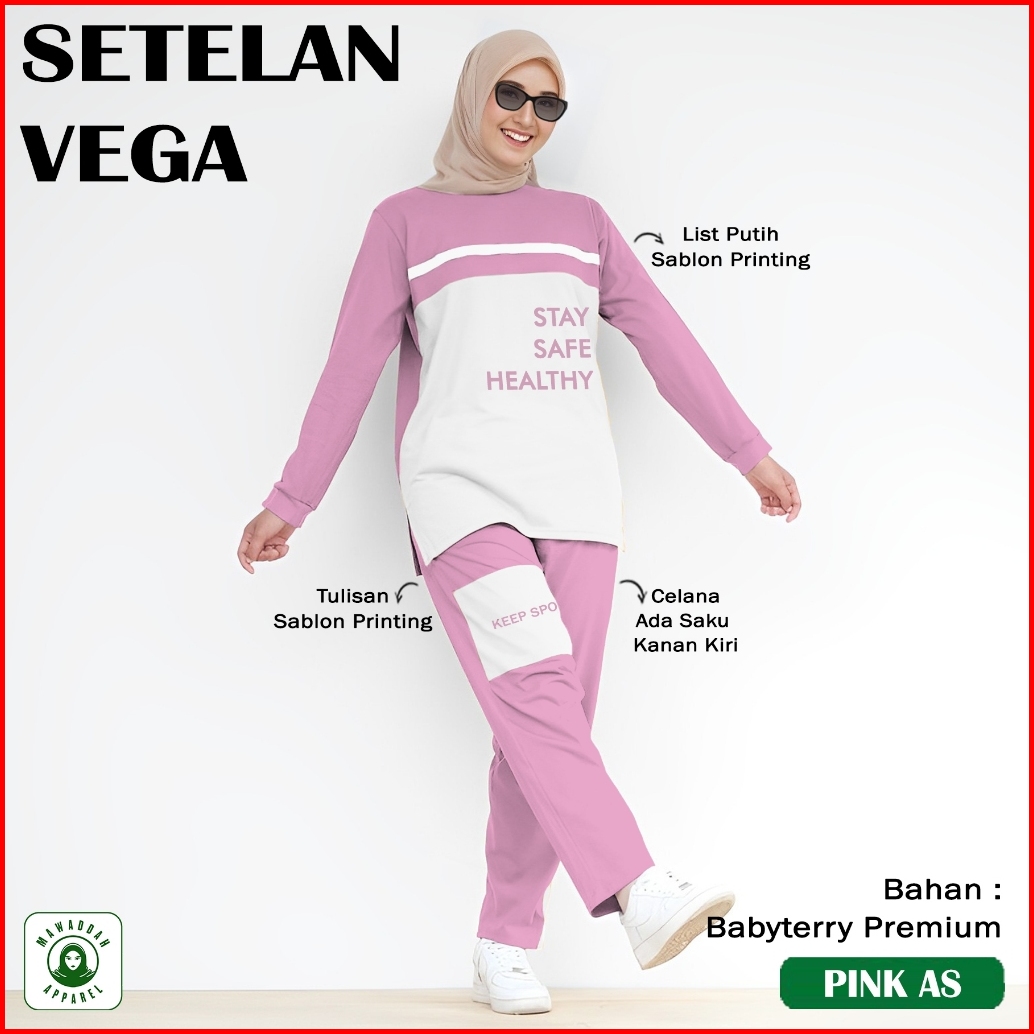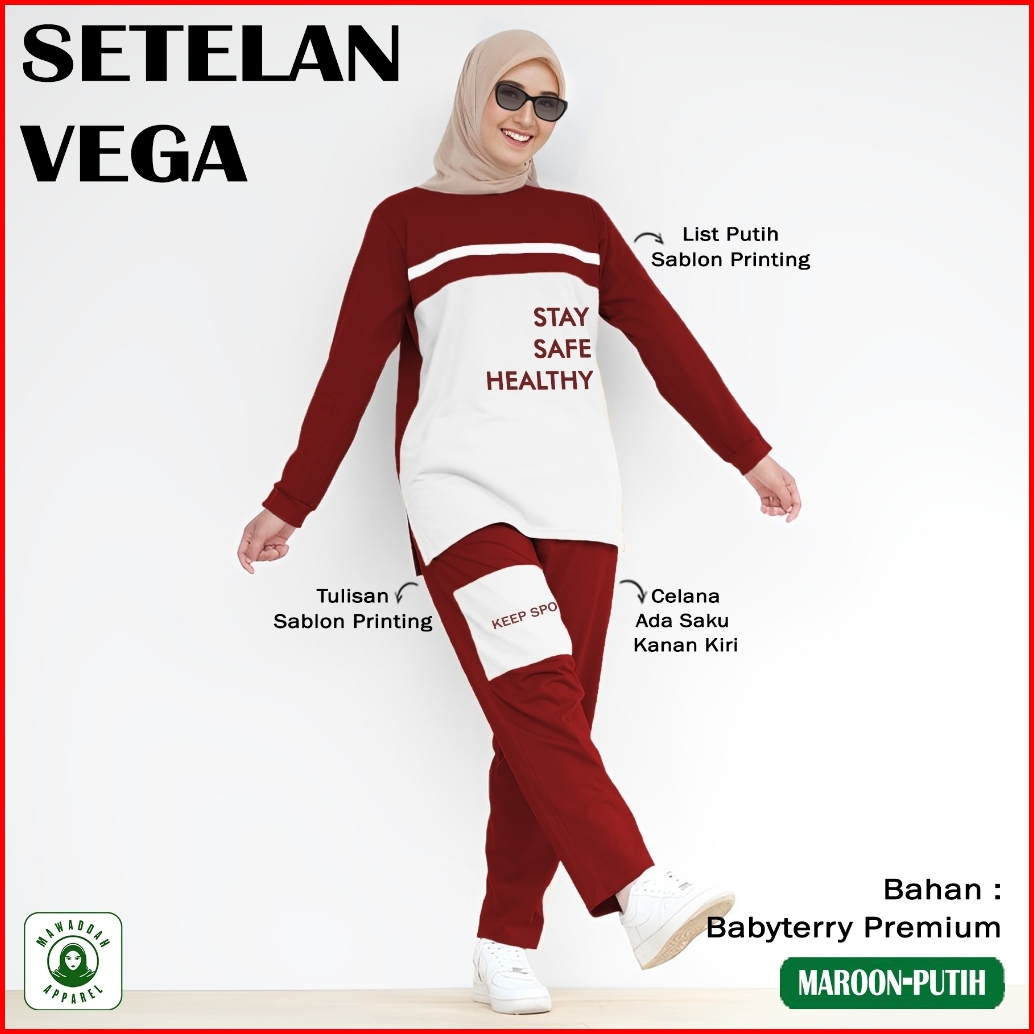 Ma Set Vega - Setelan Kaos Celana Olahraga Senam Zumba Wanita Muslim Sablon Bahan Babyterry Adem Size Xl Xxl Xxxl 35564