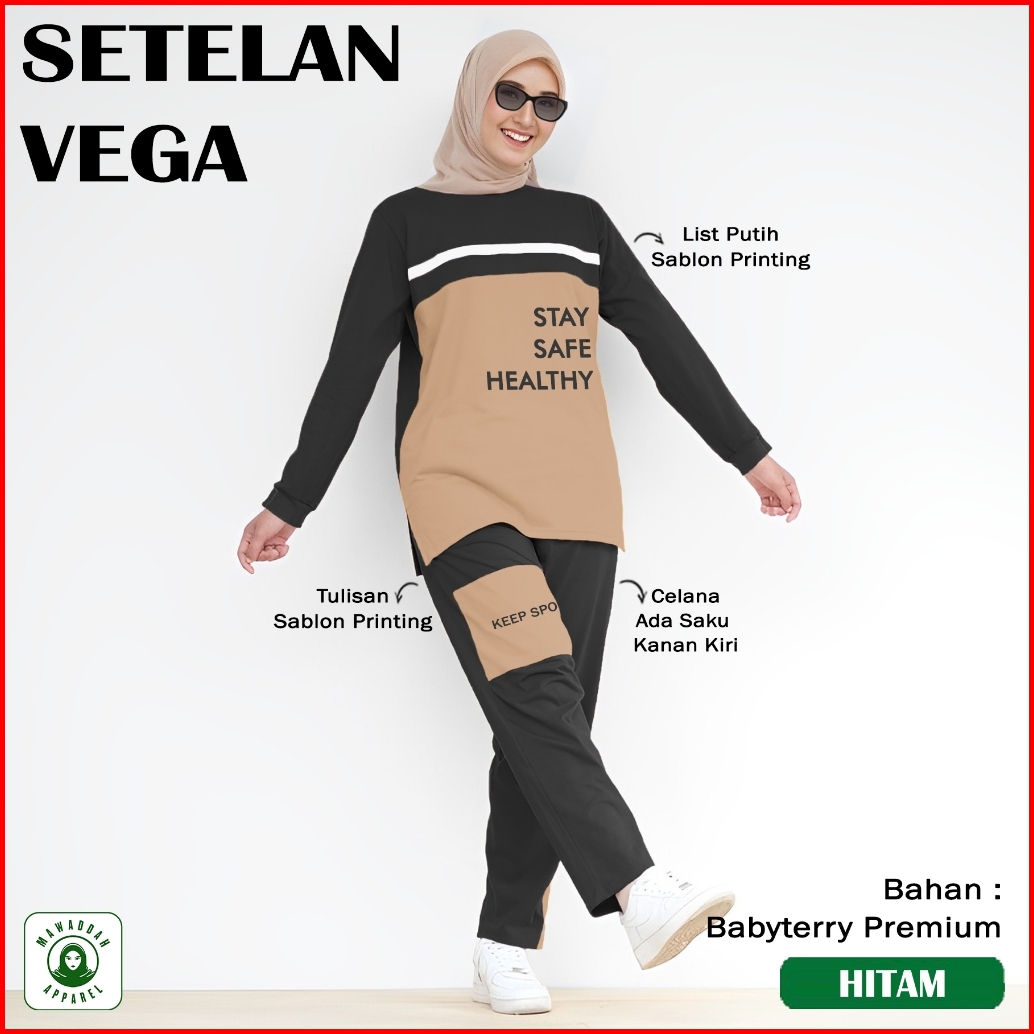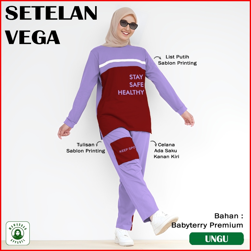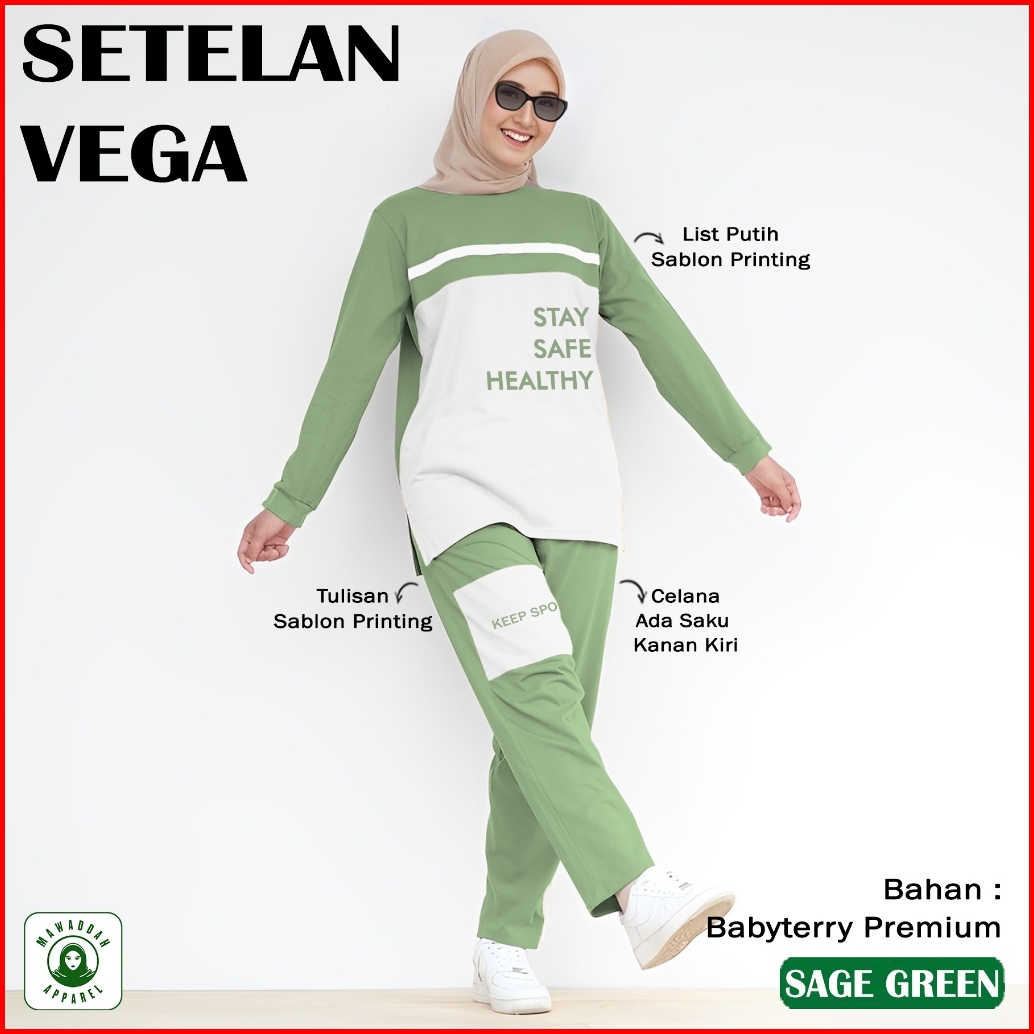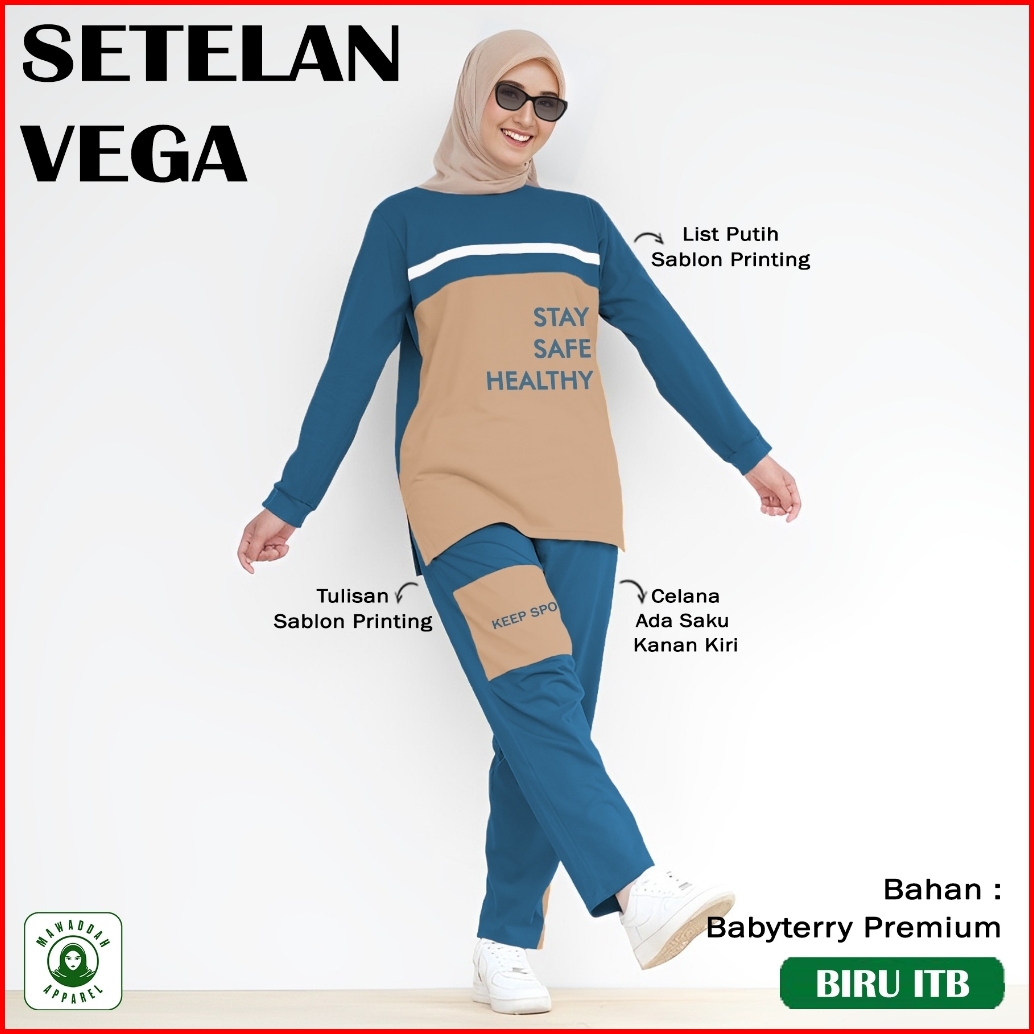 Ma Set Vega - Setelan Kaos Celana Olahraga Senam Zumba Wanita Muslim Sablon Bahan Babyterry Adem Size Xl Xxl Xxxl 35564
