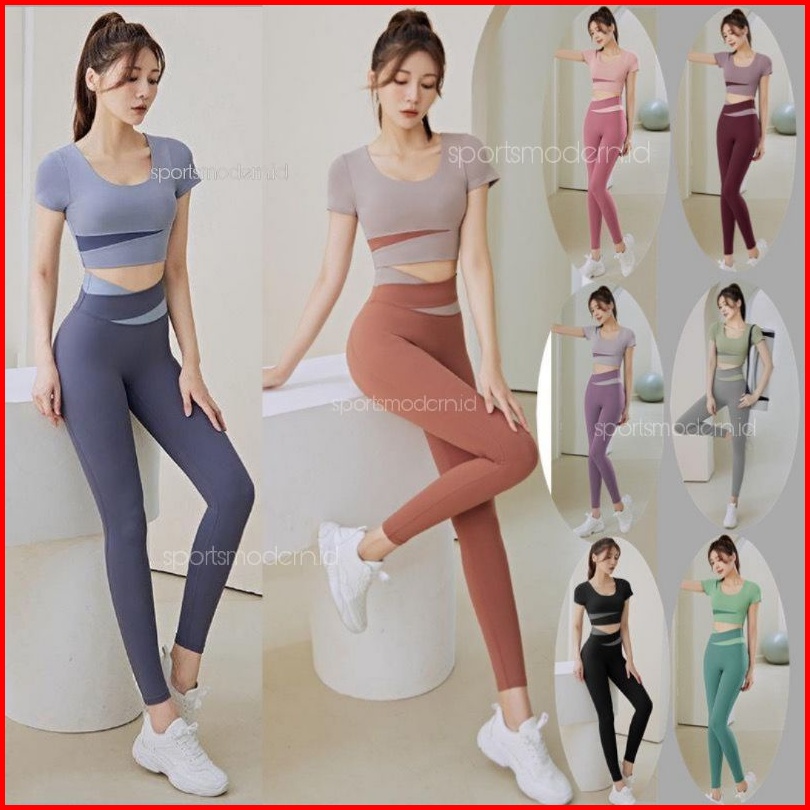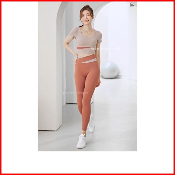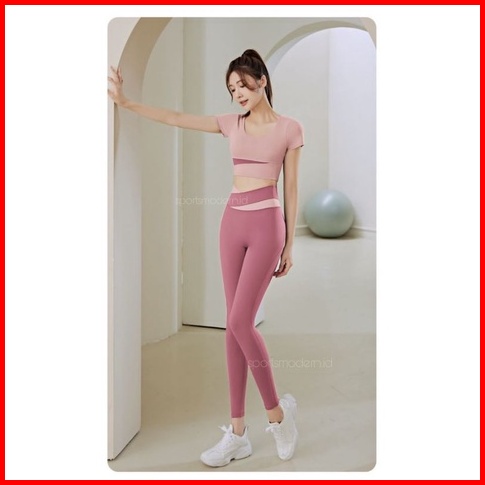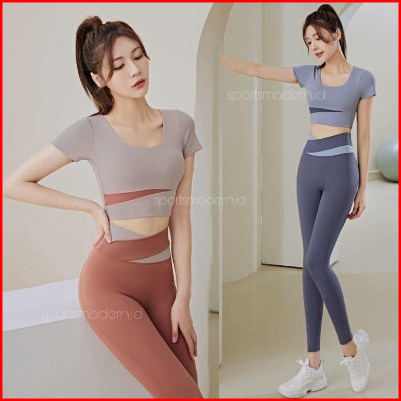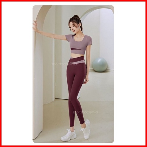Set Pakaian Olahraga Wanita T-shirt Celana Yoga Pinggang Tinggi Setcaramel