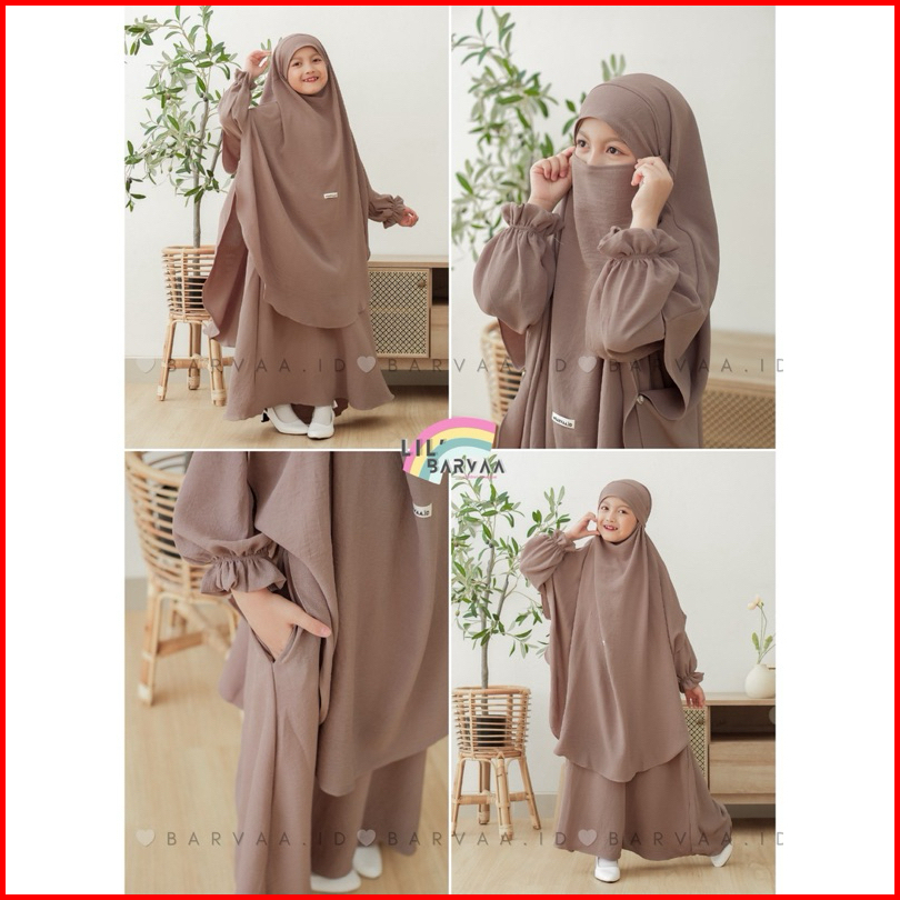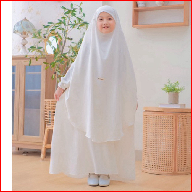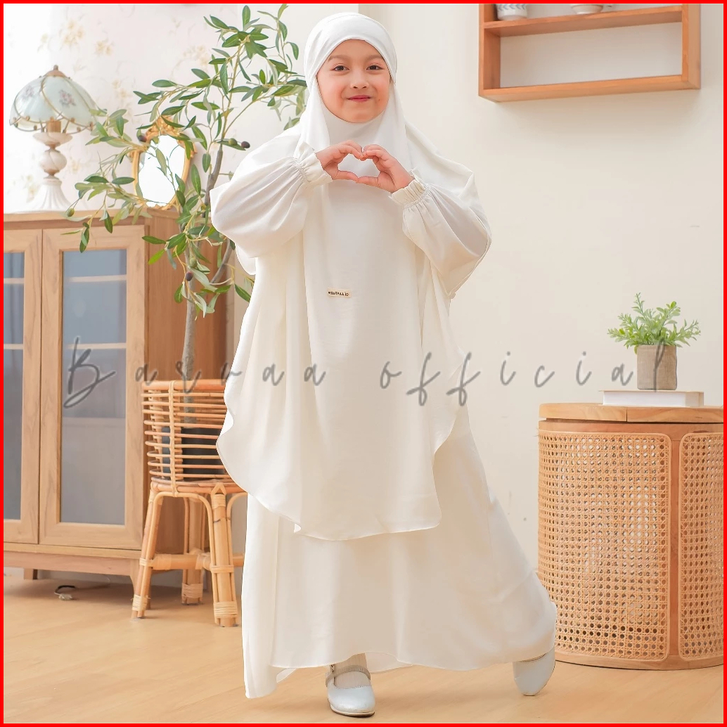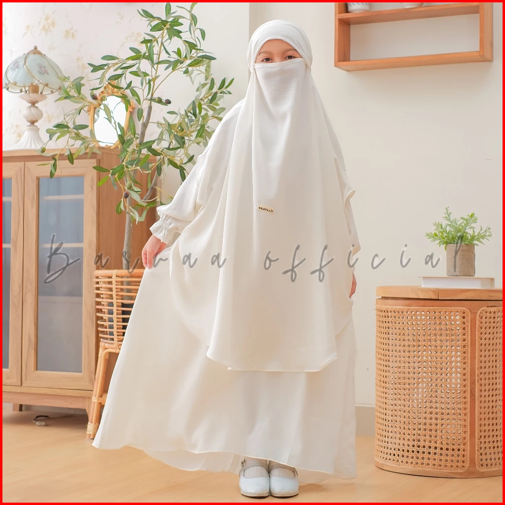 Barvaa.id - Safa Broken White Gamis Set Fk Umroh Dan Haji Anak Perempuan