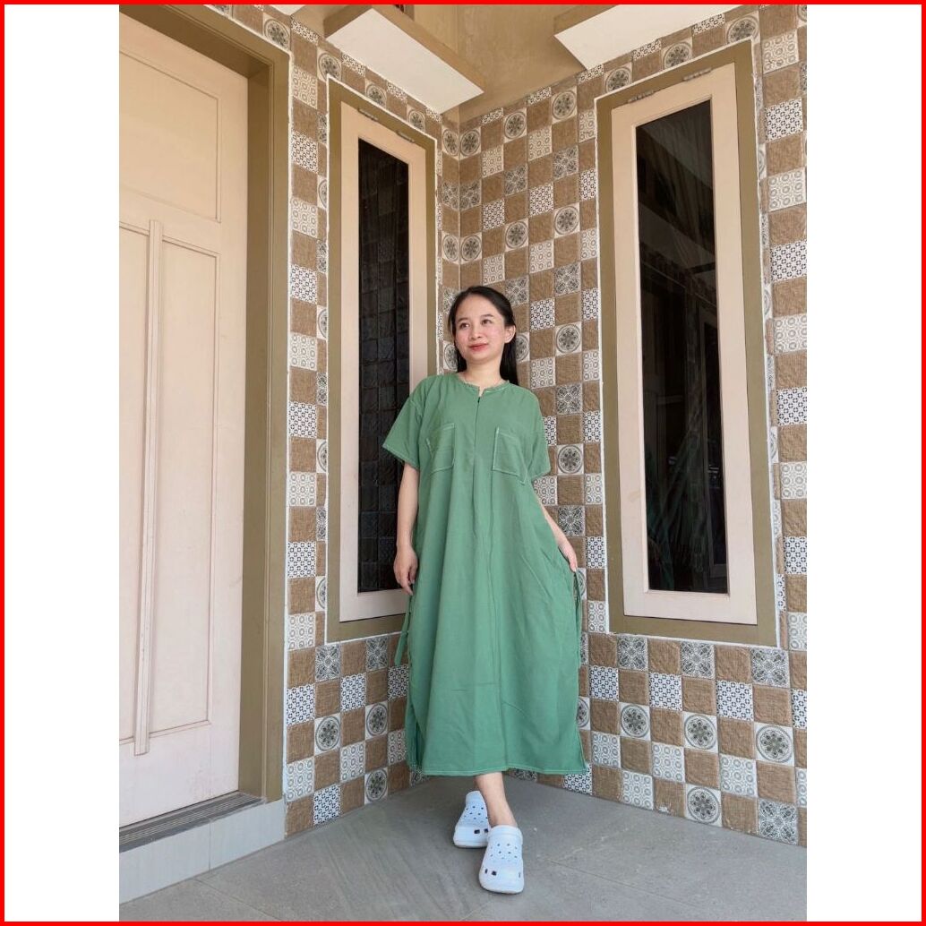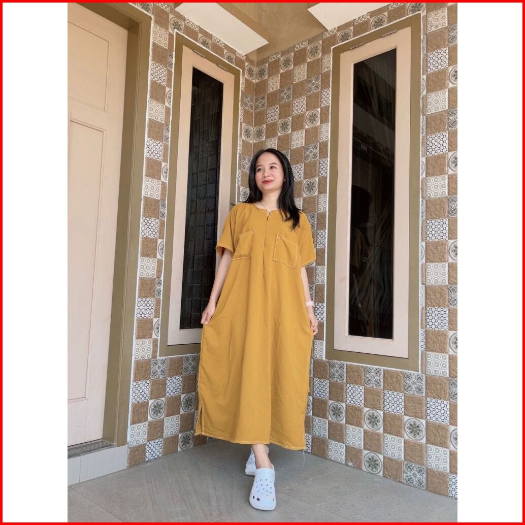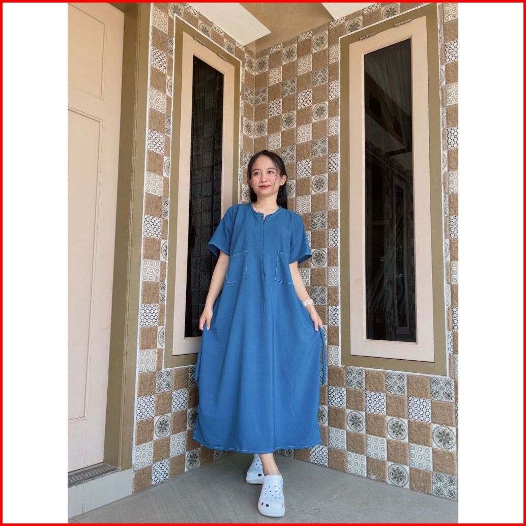 Daster Rayon Premium Polos Kekinian Pendek Jumbo Ld 125 Resleting Depan Busui Friendly Saku Depan