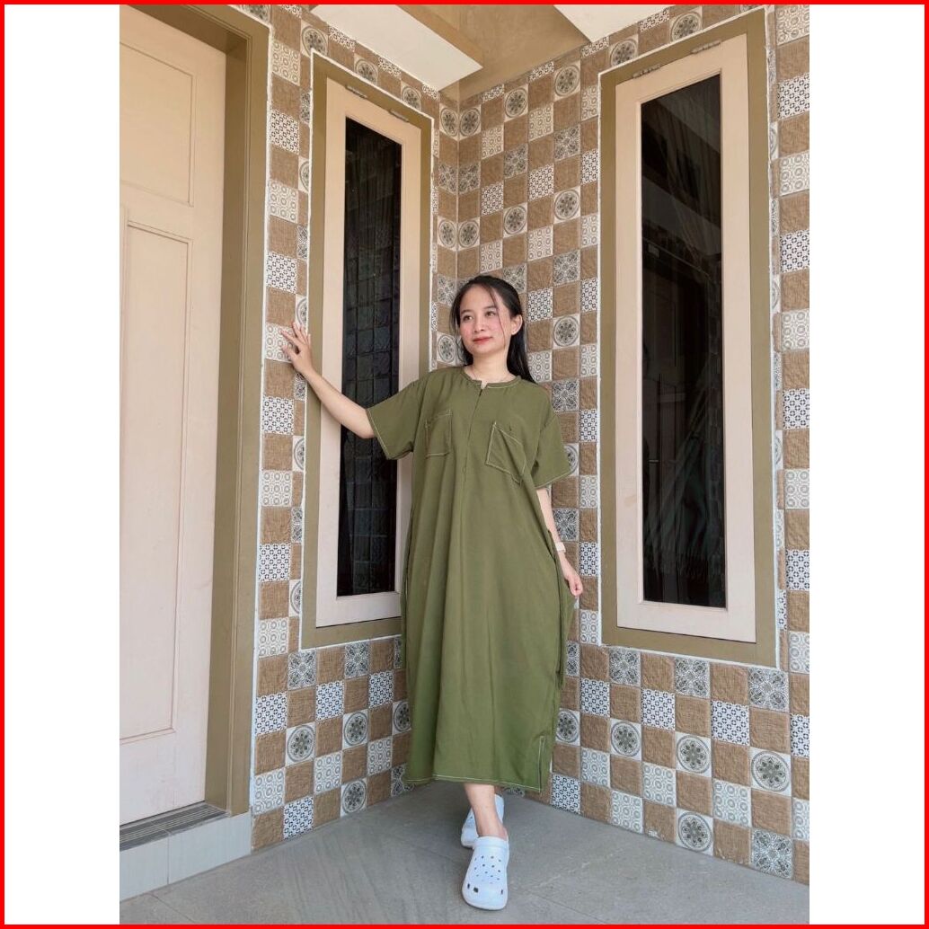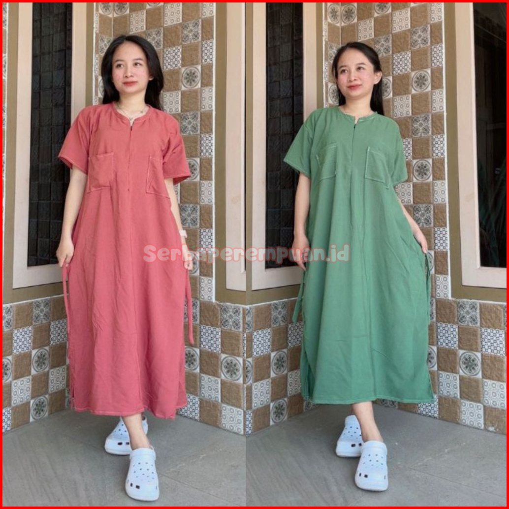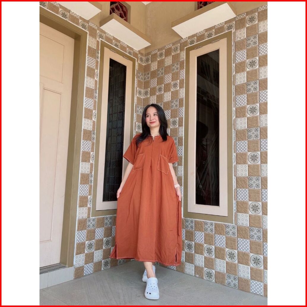 Daster Rayon Premium Polos Kekinian Pendek Jumbo Ld 125 Resleting Depan Busui Friendly Saku Depan