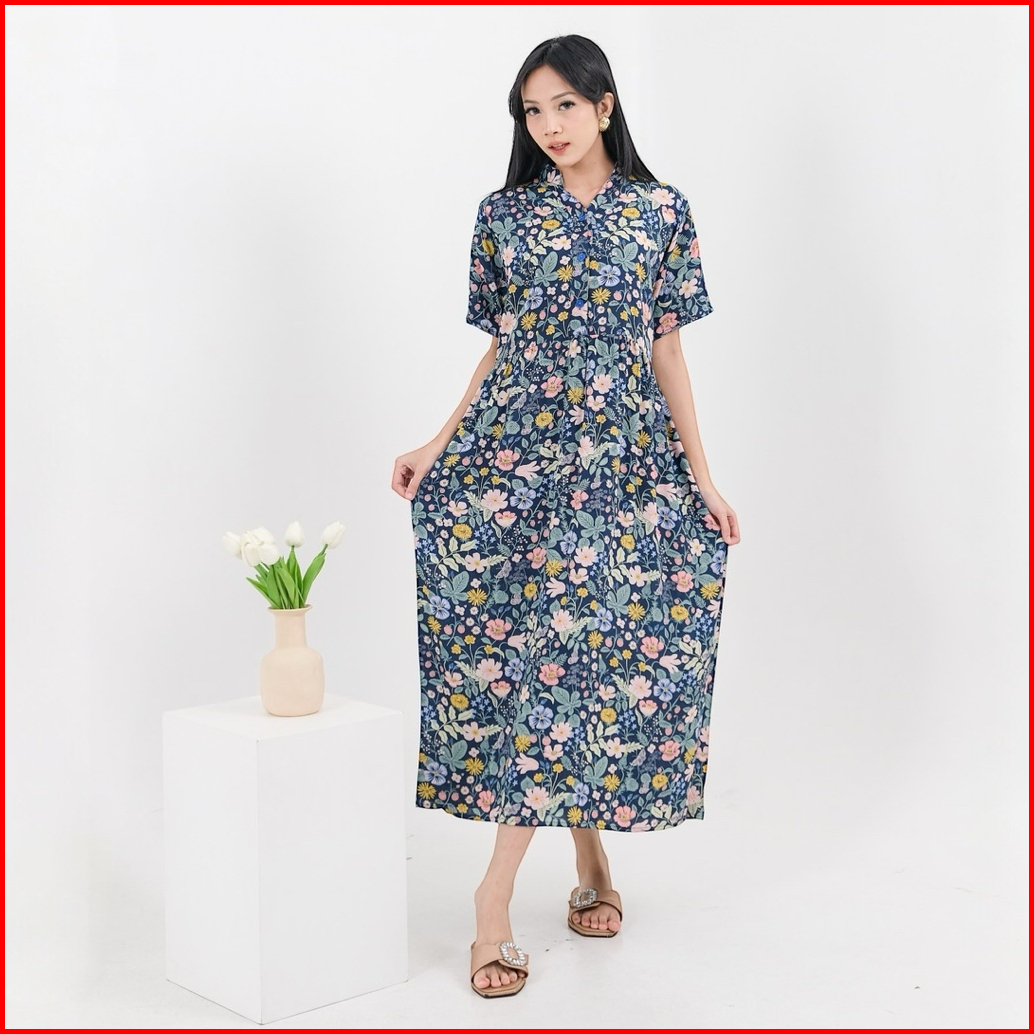 Nagita Dress Diankurnia.id - Daster Rayon Premium Busui Leher Shanghai All Size Fit Xl Daster Saku
