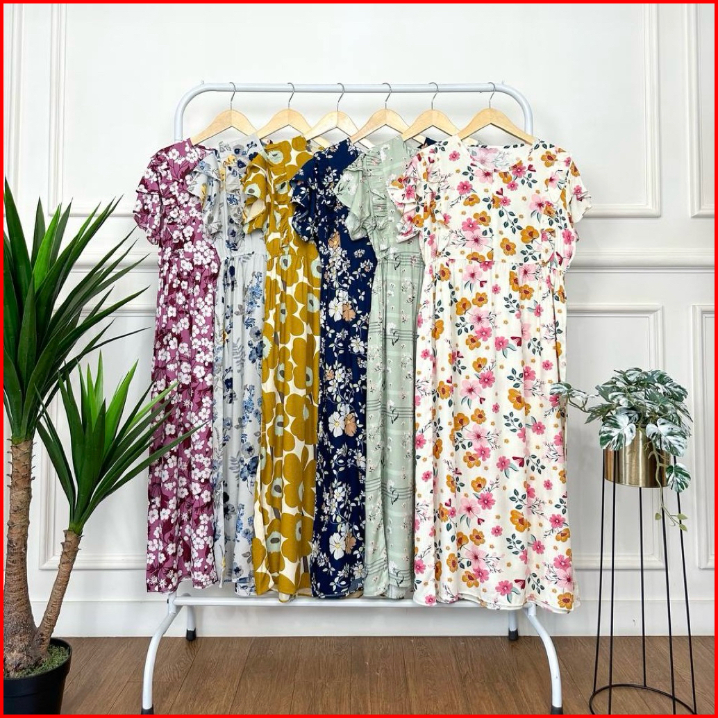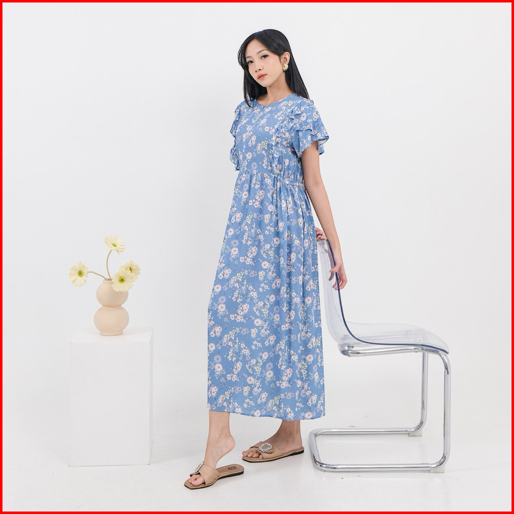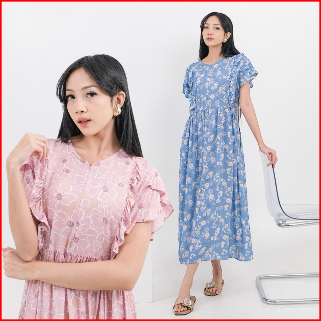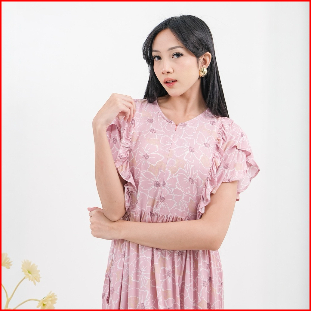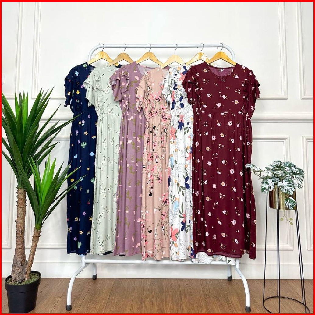 Daster Dress Nindy Diankurnia.id - Baju Harian Wanita Katun Rayon Premium Busui Bumil Friendly Semata Kaki Ruffle Depan