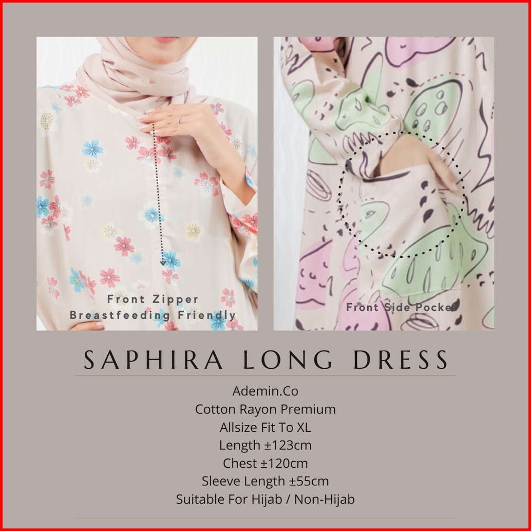 Saphira Long Dress Rayon Premium By Ademin.co Daster Long Basic Lengan Panjang Busui - Bumil Friendly