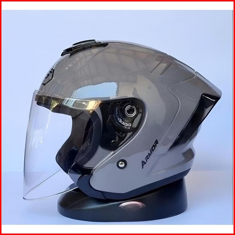 Helm Js Armor Solid Sni Warna Grey Glossy Helm Pria Wanita Helm Half Original