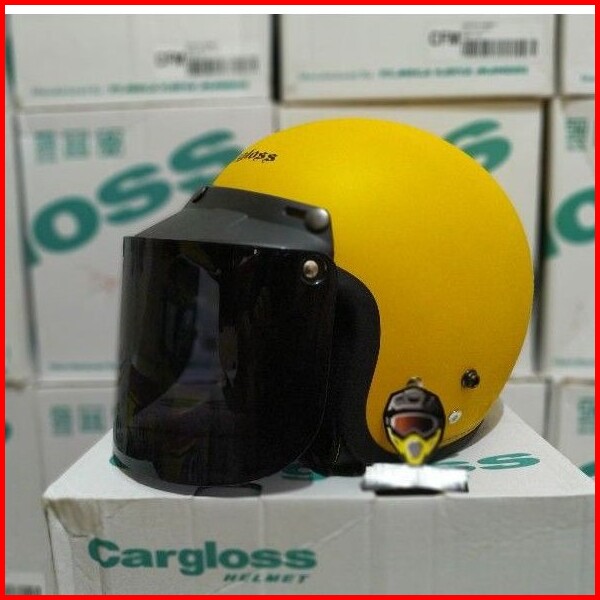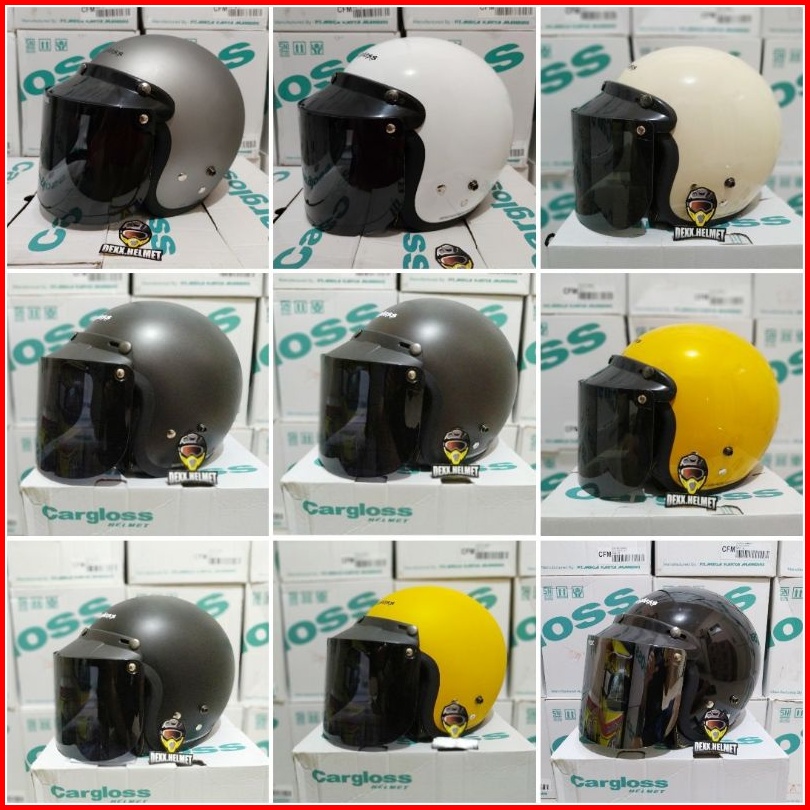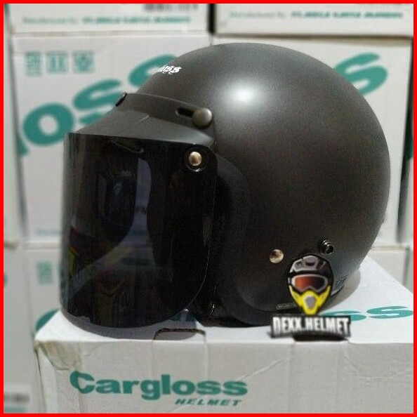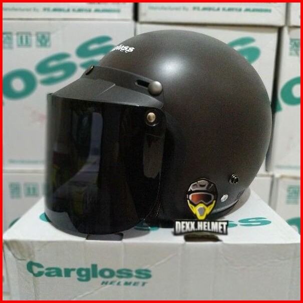Helm Cargloss Original Kaca Datar Injak Hitam Silver Pelangi Clear Kardus