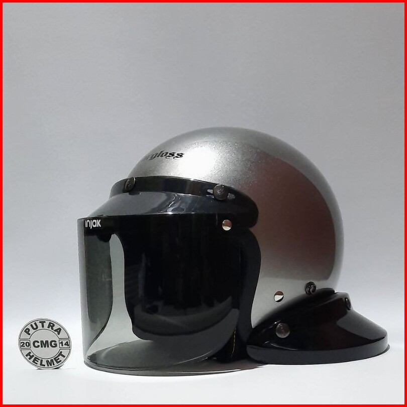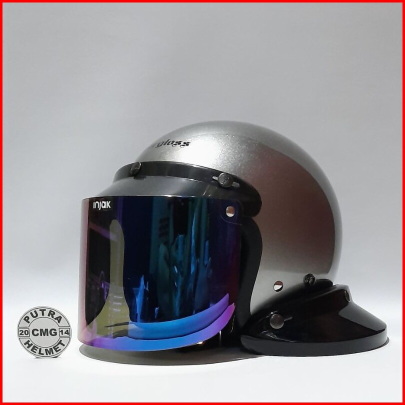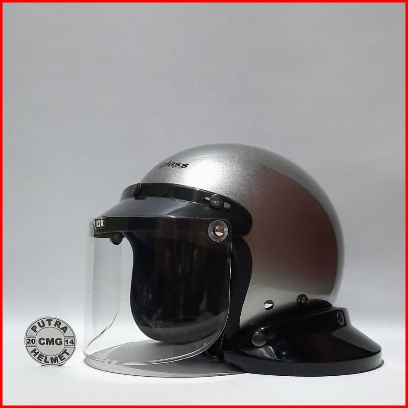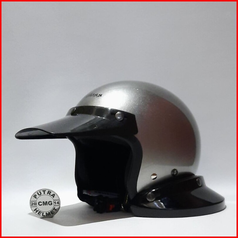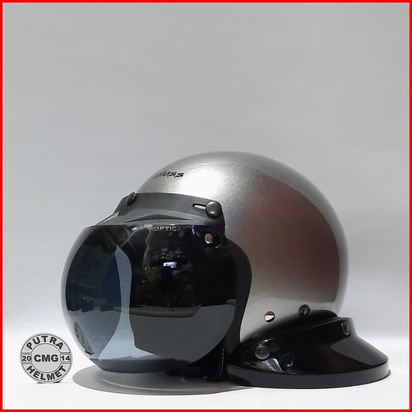 Paket Promo Helm Cargloss Original Cfm Retro Silver Met 8 Kaca Datar Flat Cembung
