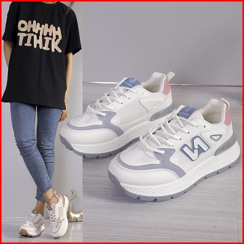 Sepatu Dengan Diskon 50 Pembersihan Gudang Sepatu Wanita Sneakers Fashion Korean Trend Karet Shoes Casual Permukaan Jari