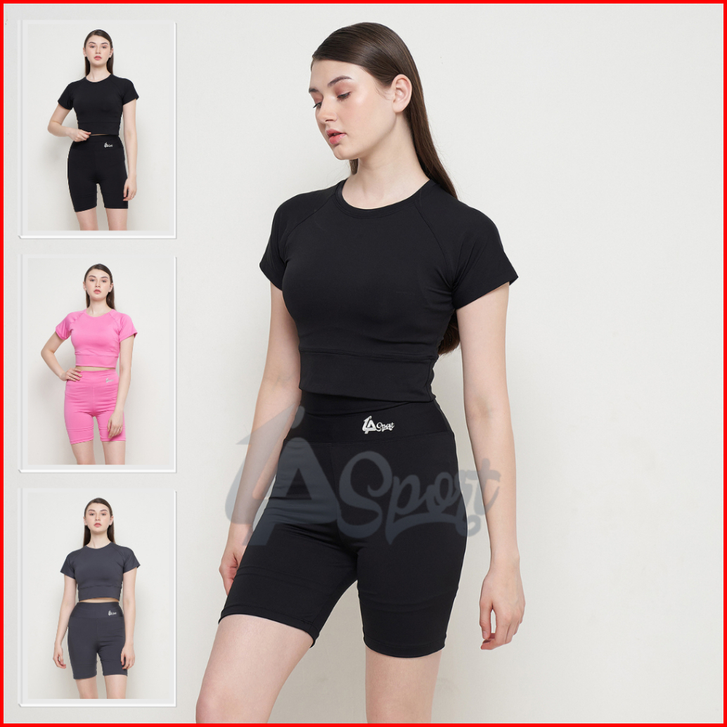 Set Crop Top Celana Pendek Setelan Olahraga Wanita Setelan Gym Wanita Setelan Senam Wanita Set Zumba Wanita