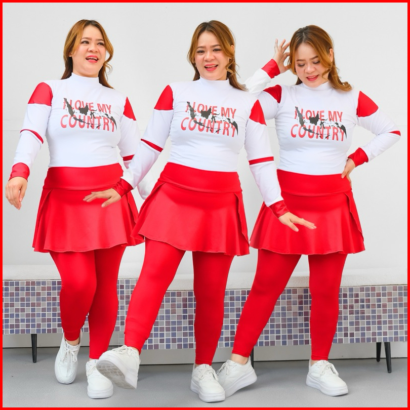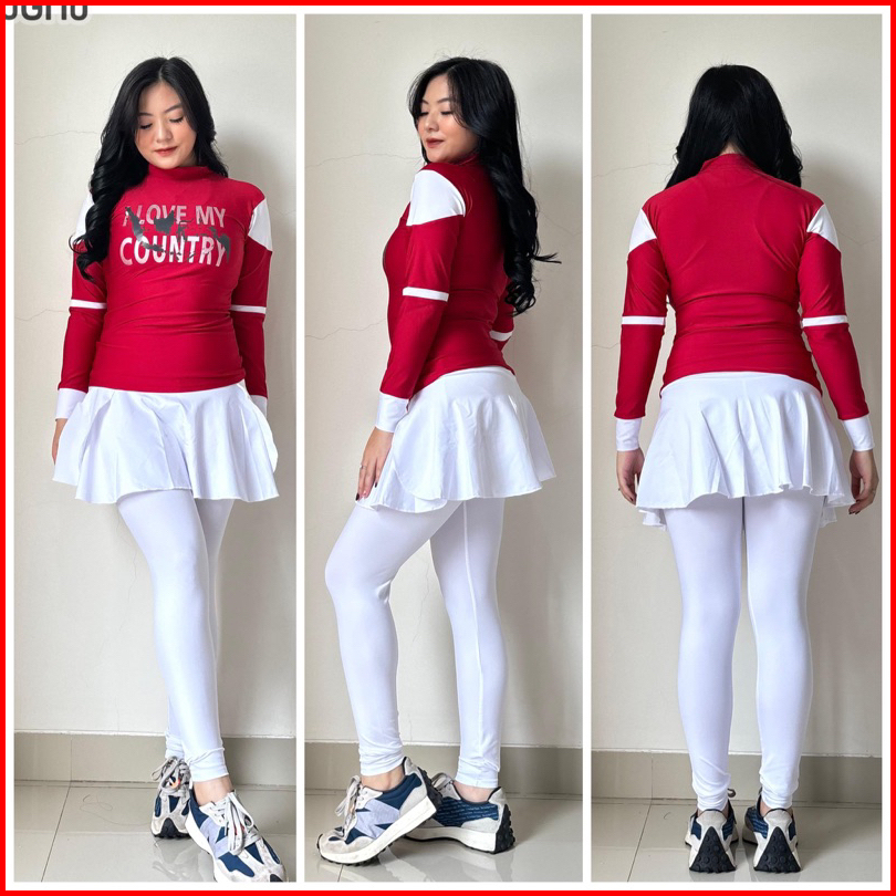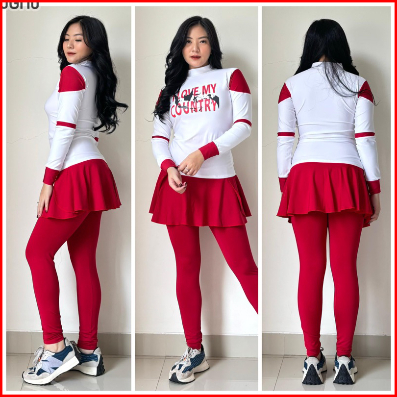Setelan Senam Agustusan Merah Putih Indonesia Island-legging Rok Neci