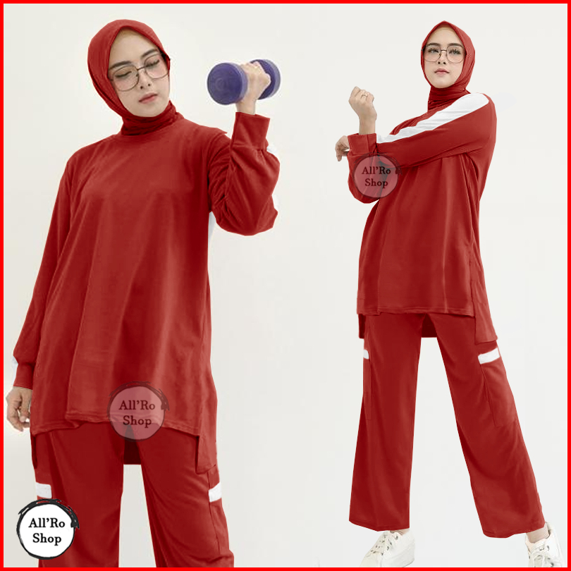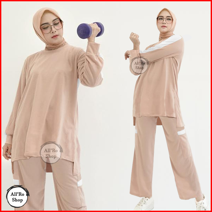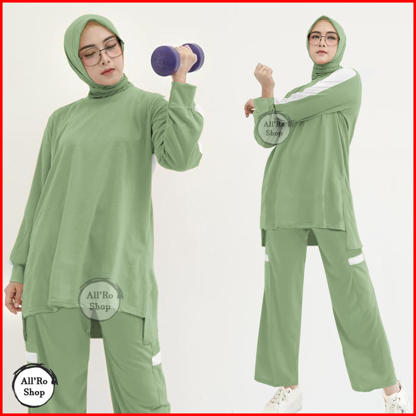 Set Nara - Setelan Olahraga Wanita Muslim Hijab Syari Sopan Oneset Baju Dan Celana Senam Model Tunik Lengan Dan Celana P