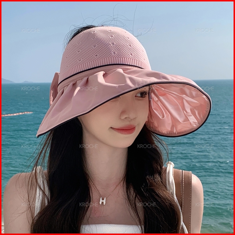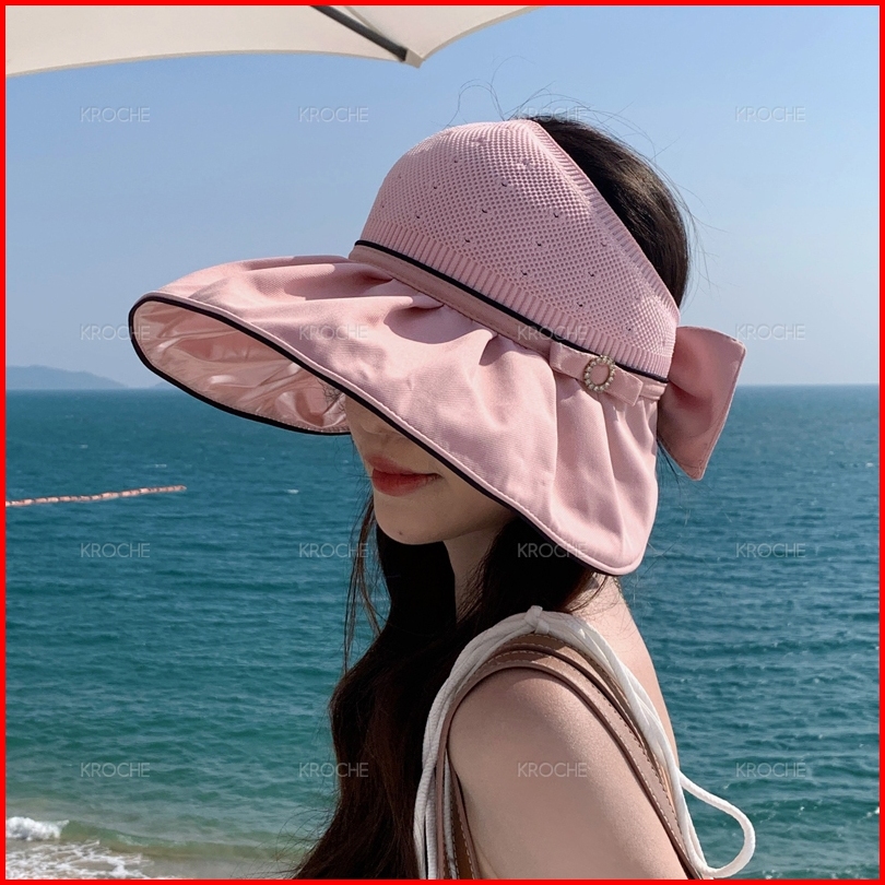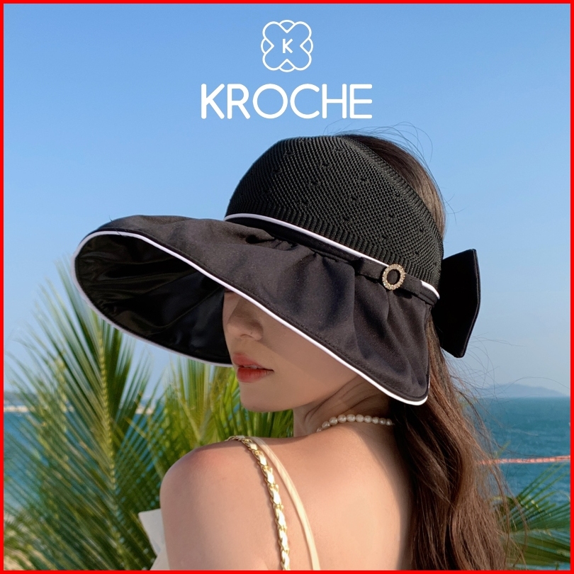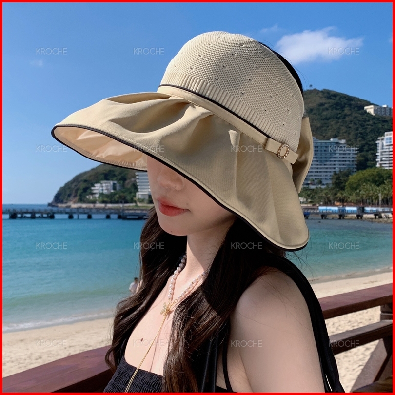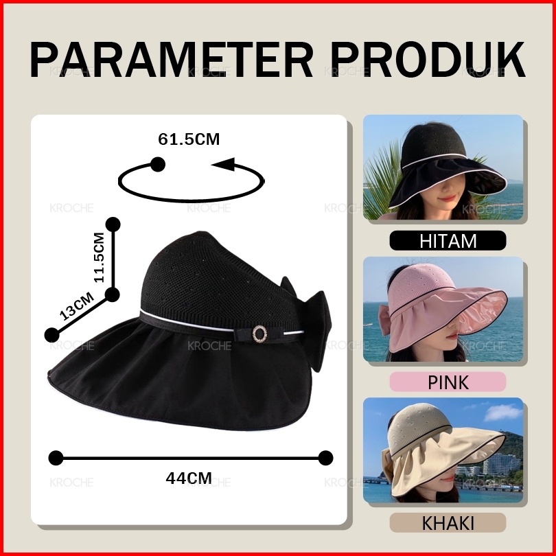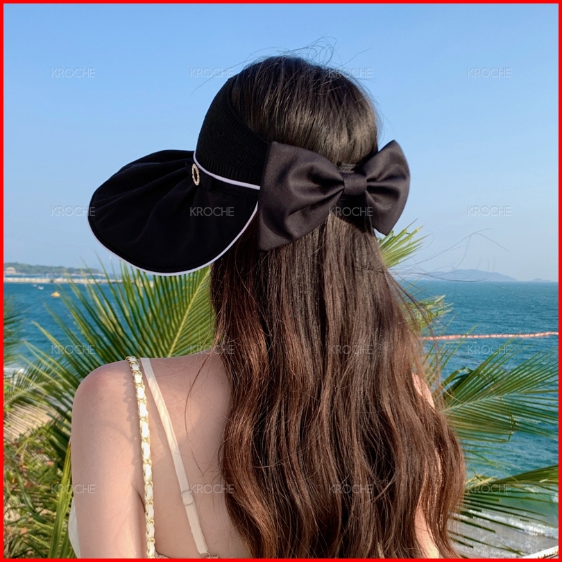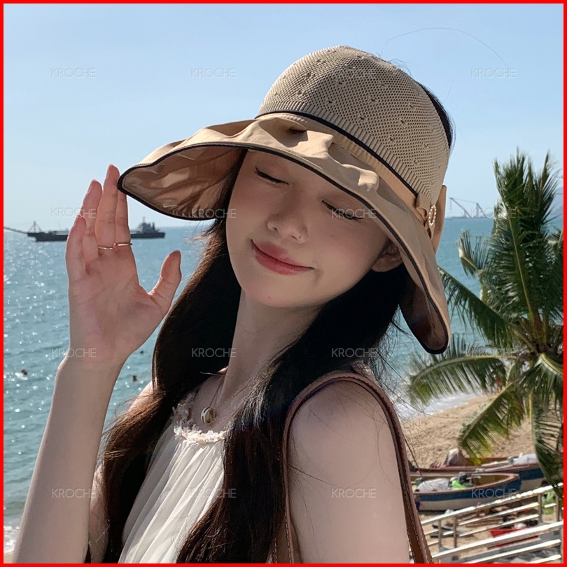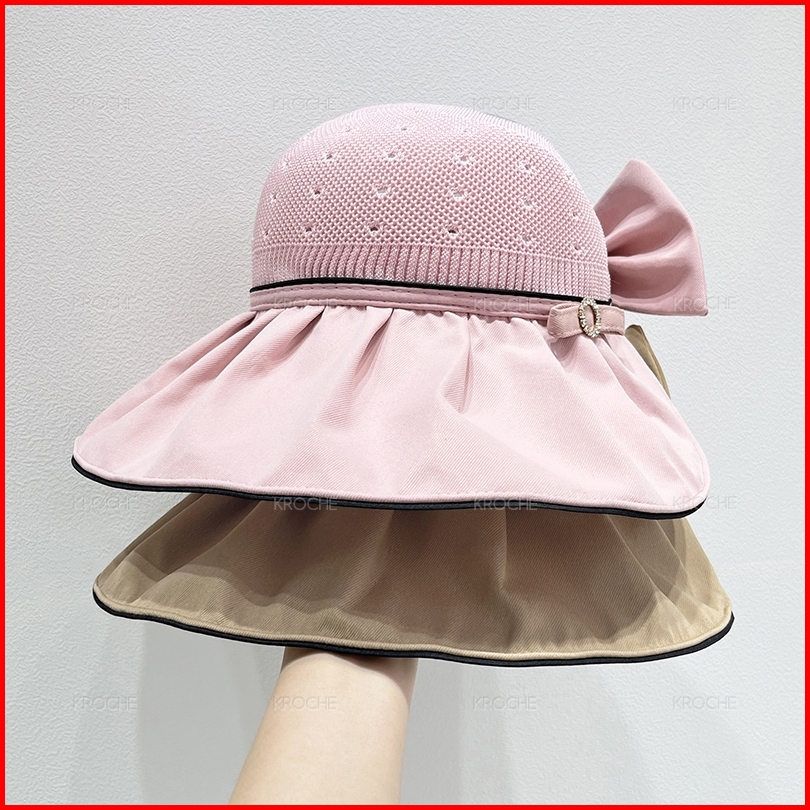 Kroche - Topi Wanita Topi Pantai Wanita Bucket Hat Aksen Pita Belakang Beach Hat Fashion
