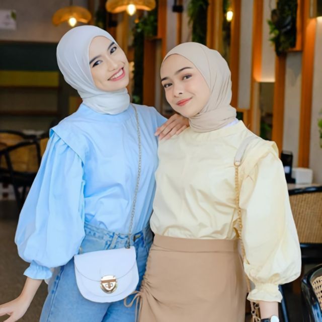 Moni Blouse Katun Linen - Blouse Puffy LMoni Blouse Katun Linen - Blouse Puffy Lengan Balon - Atasan Wanita Korean Style