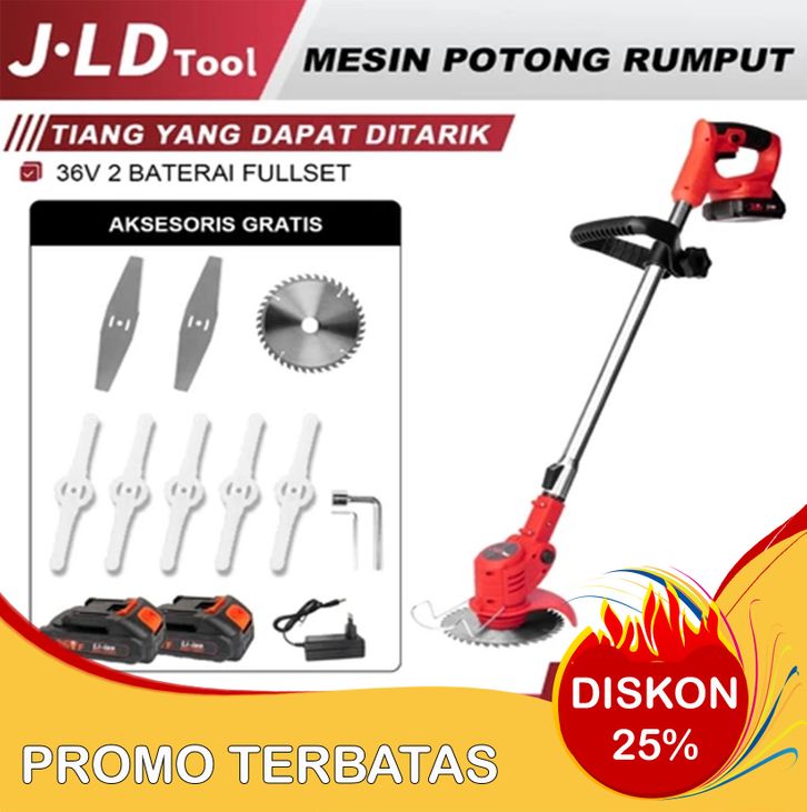 JLD Mesin Babat Potong Rumput Baterai Cordless String Trimmer Weed Wacker Alat Pemotong Rumput Kecil Portable Mesin Pema
