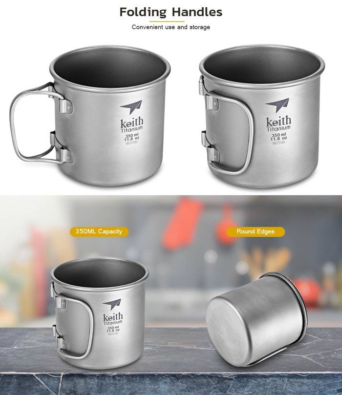 Keith Titanium Ultralight Folding Mug Gelas Camping Traveling Original