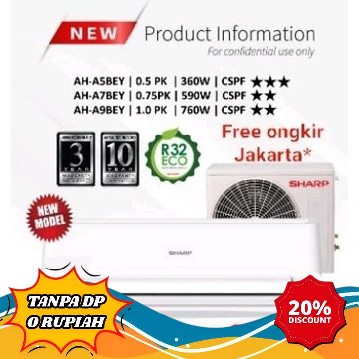 [Mall] AC SHARP 1/2 PK AH-A5BEY / 5BEY + PASANG SPLIT 1/2PK 0.5 PK