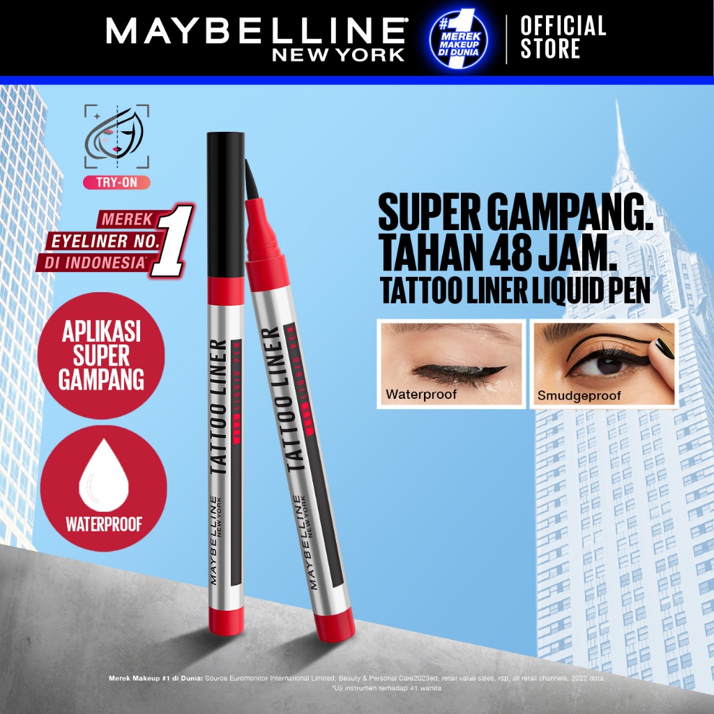 MAYBELLINE EYELINER WATERPROOF TATTOO LINER 48H LIQUID PEN HIG IMPACT TAHAN LAMA BEST SELLER