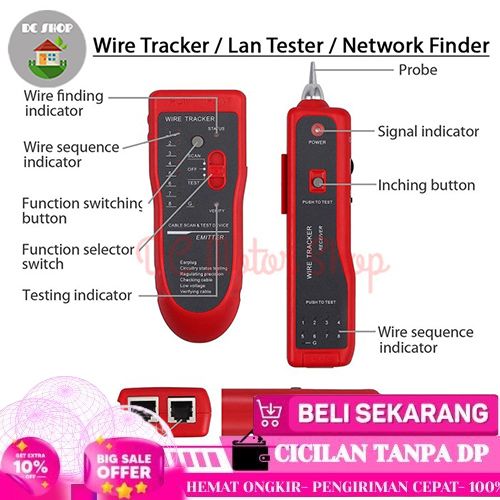 BAGUS LAN TESTER WIRE TRACKER KABEL JARINGAN NETWORK FINDER RJ45 RJ11 AR868 - OPP BAG