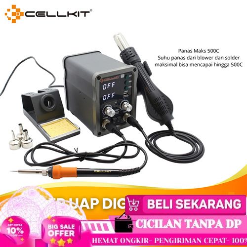 BAGUS CELLKIT SOLDER UAP - BLOWER - HOT AIR GUN DIGITAL 3IN1 878D+ MEMORY & PENGISIAN DAYA 10W(5V2A)
