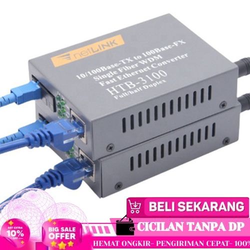 BAGUS NETLINK HTB-3100 FIBER OPTICAL MEDIA CONVERTER RJ45 20KM 10/100M A+B - HTB-3100B