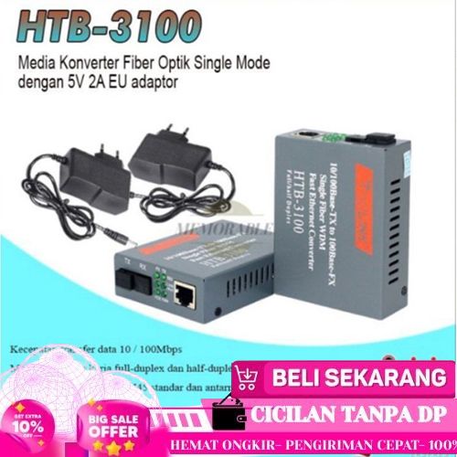 BAGUS NETLINK/ETHERLINK OPTICAL MEDIA CONVERTER HTB-3100 (A/B) 25KM - KONVERTER FO (LN)