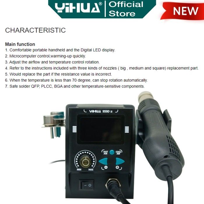 BAGUS YIHUA 959D-II BLOWER SOLDER UAP SMD REWORK STATION HOT GUN 959D II ORI