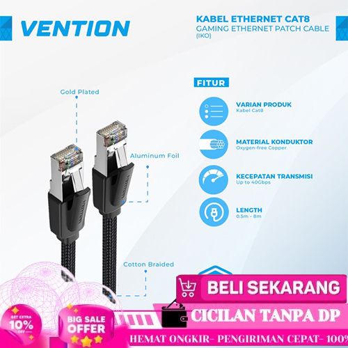 BAGUS VENTION 2M KABEL LAN CAT8 RJ45 ETHERNET INTERNET NETWORK PATCH - IKO, 15 METER