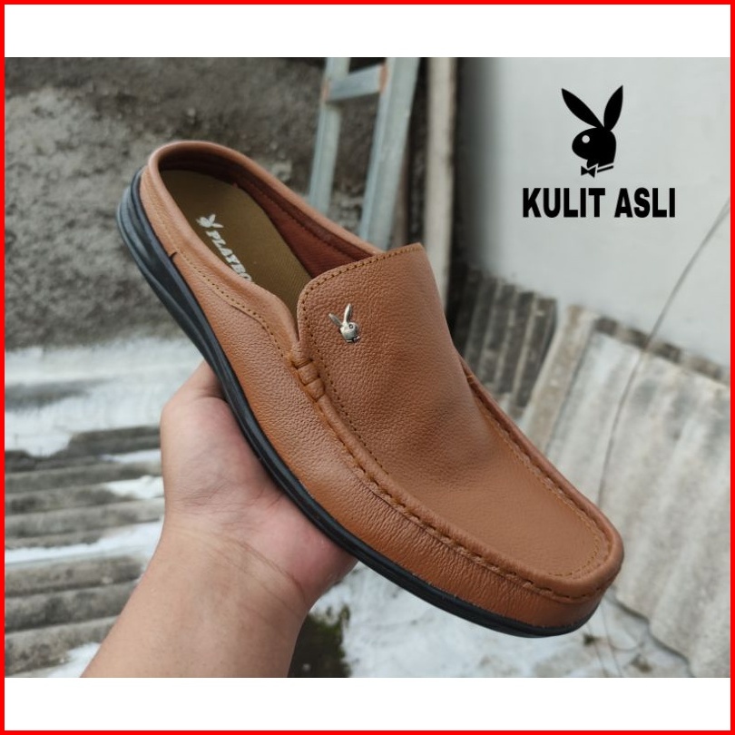 Sepatu Sandal Pria 100 Kulit Asli Slop Pria Kulit Asli