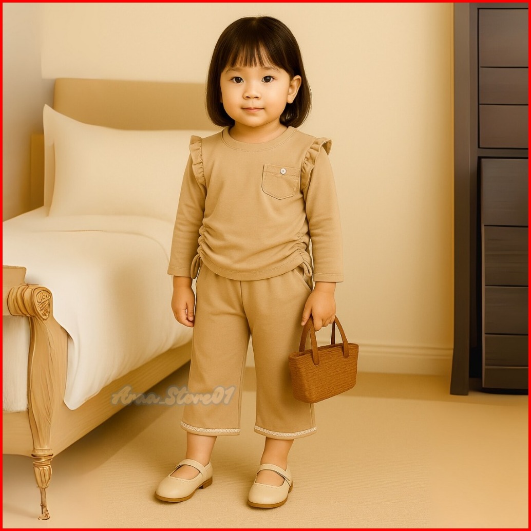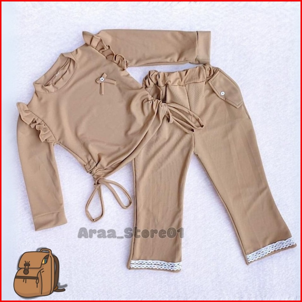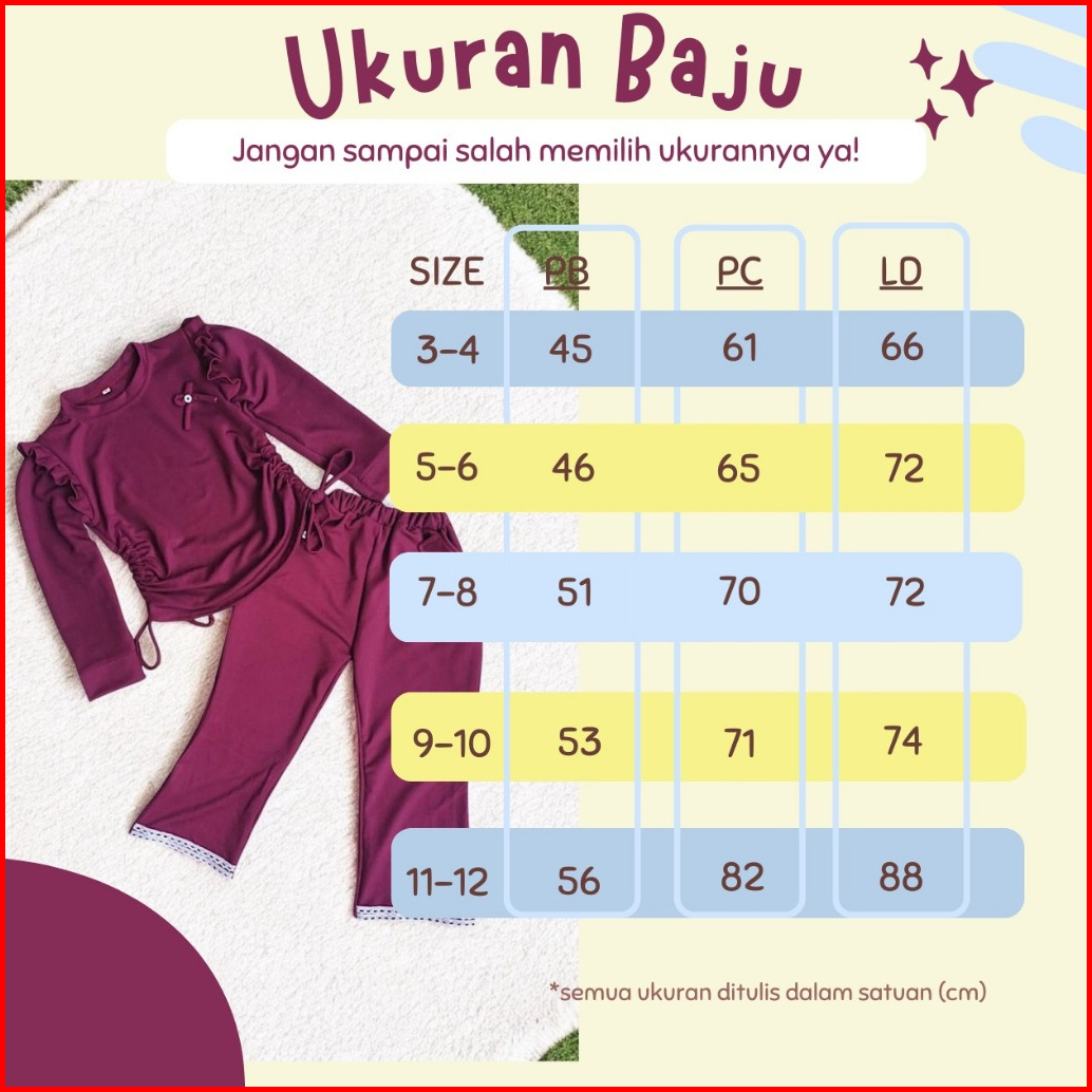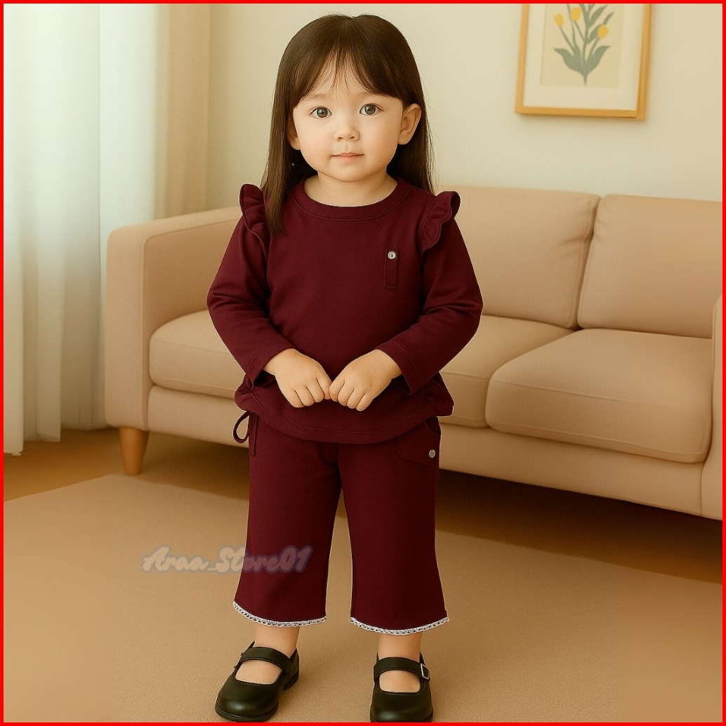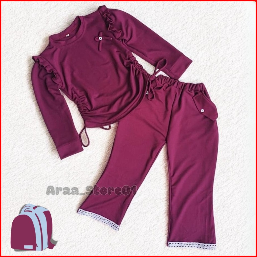 Setelan Burgundy Renda Baju Lebaran Anak Perempuan Usia 3-12 Tahun