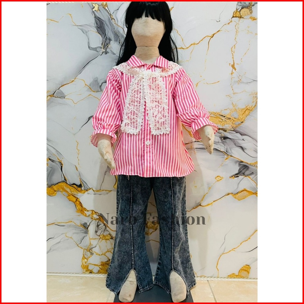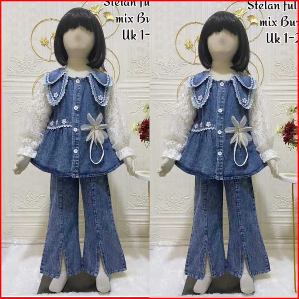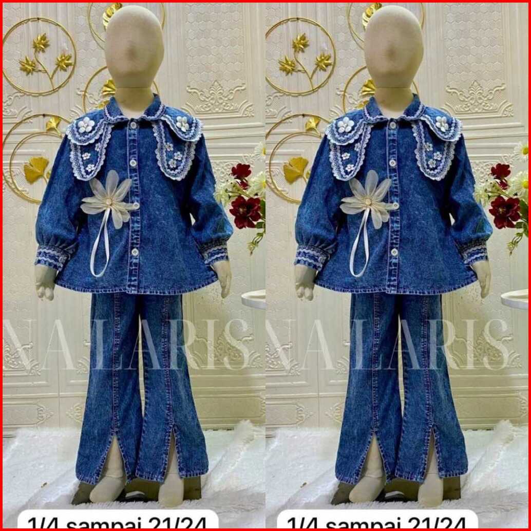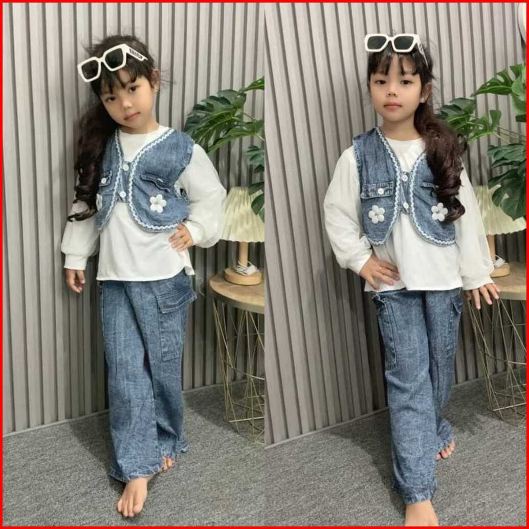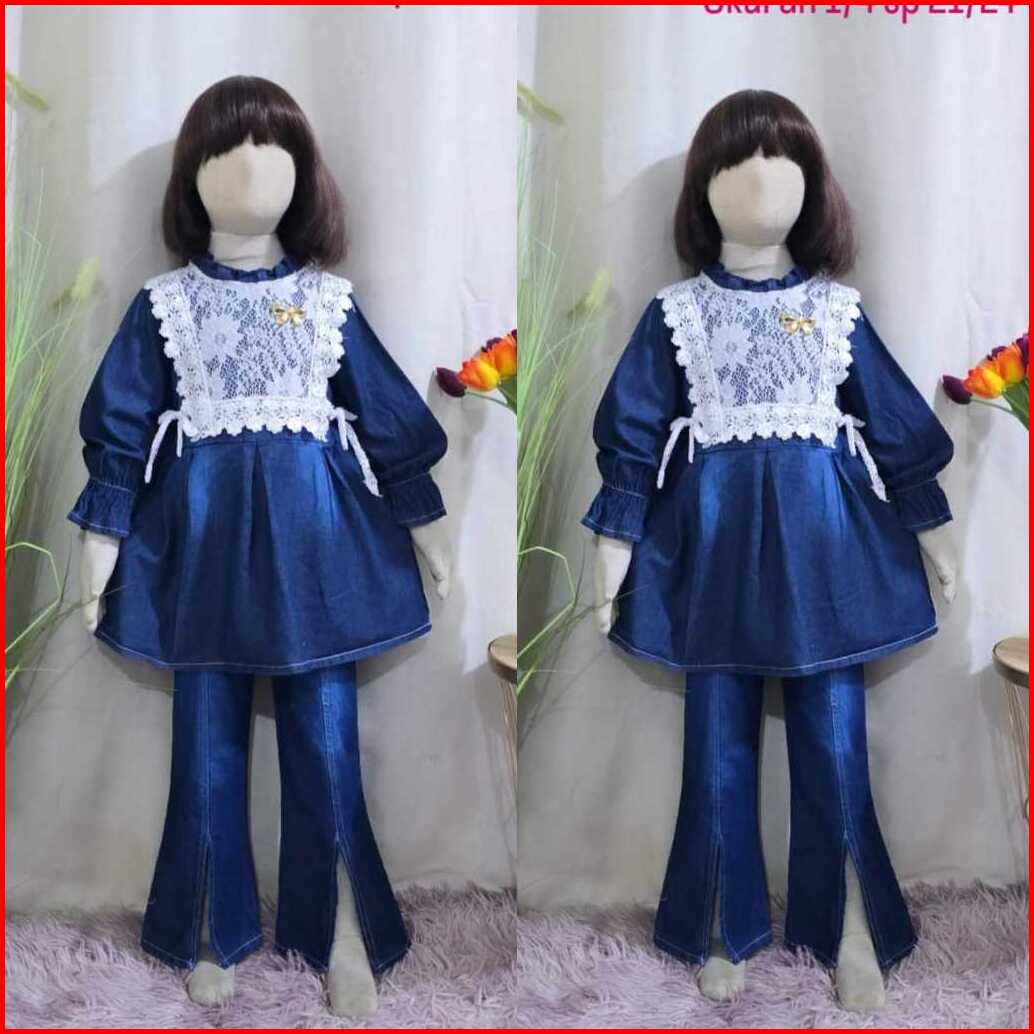 Terviral Setelan Baju Kemeja Anak Perempuan Jeans Gaya Korea Usia Anak 3 - 10 Tahun Model Terbaru 2025 Keginian