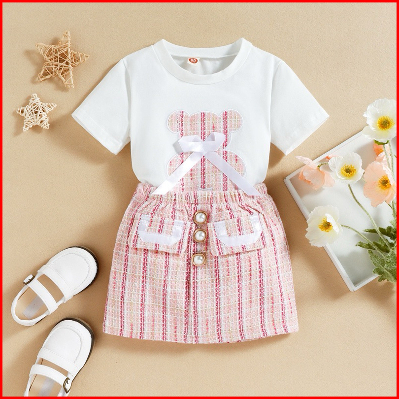 0-5th Setelan Anak Perempuan Atasan Bawahan Premium Bear Pink Blue
