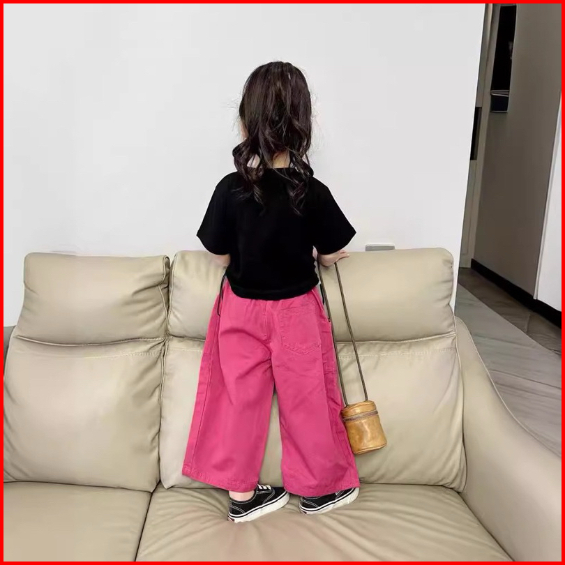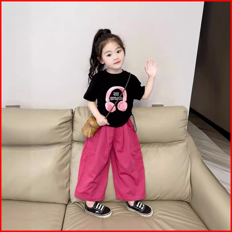 2-8tahun Setelan Kaos Serut Ushape Kargo Pink Baju Anak Perempuan Gaya Korea