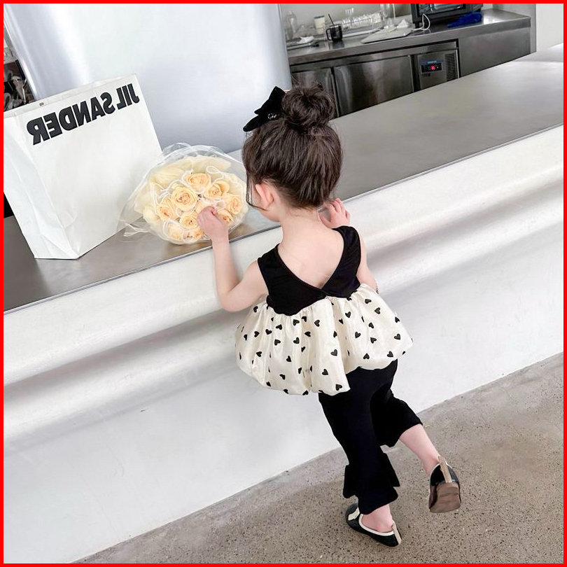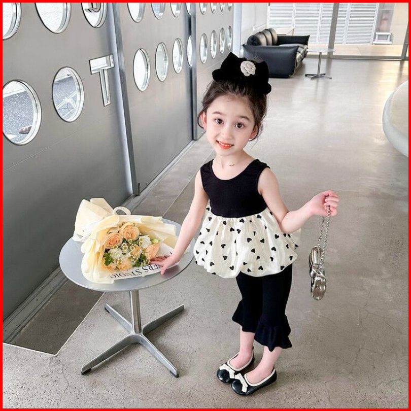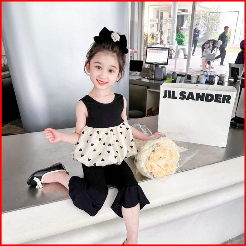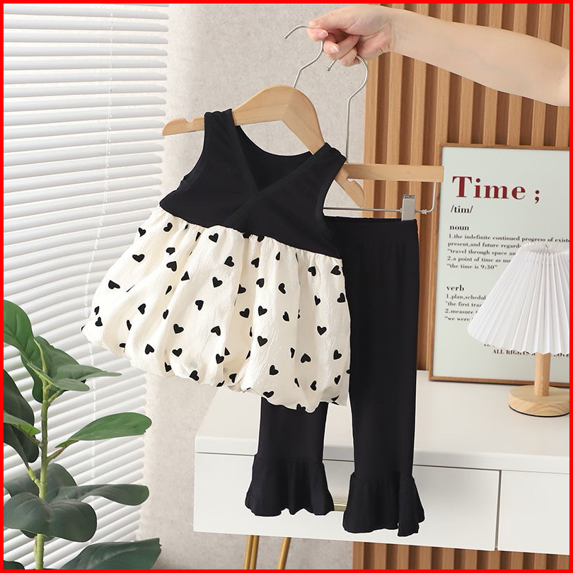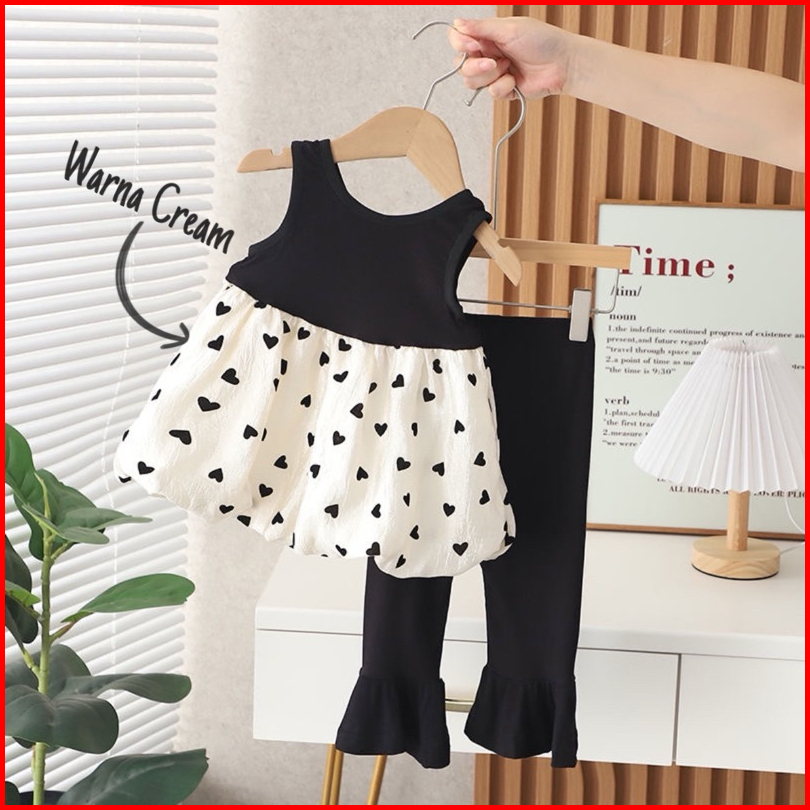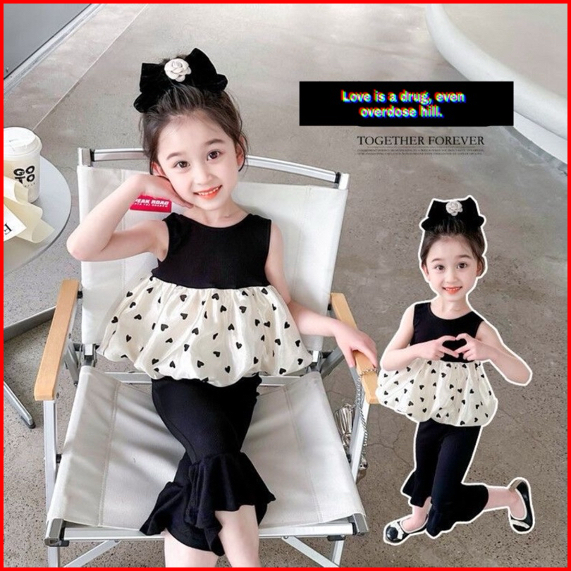 2-10tahun Setelan Celana Ruffle Polka Love Baju Anak Perempuan Cantik