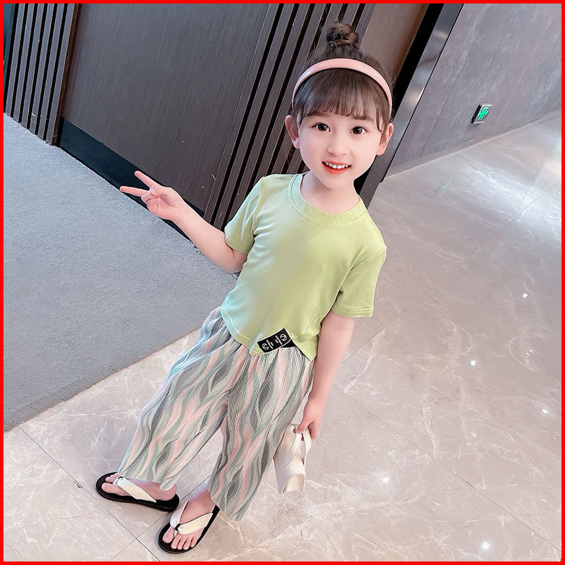 2-8tahun Setelan Hijau Lilac Kulot Baju Anak Perempuan Cantik