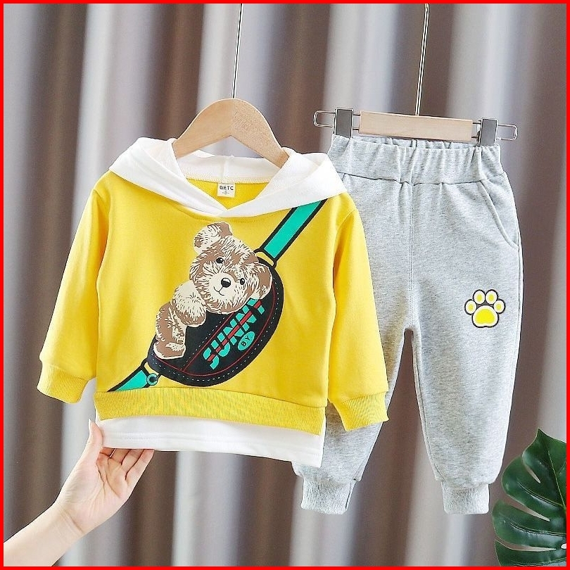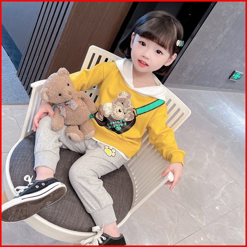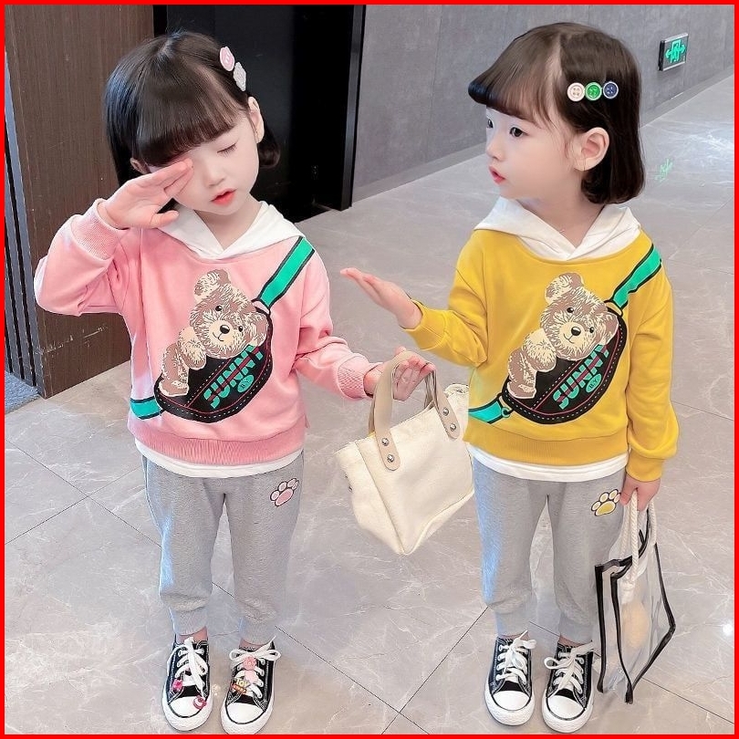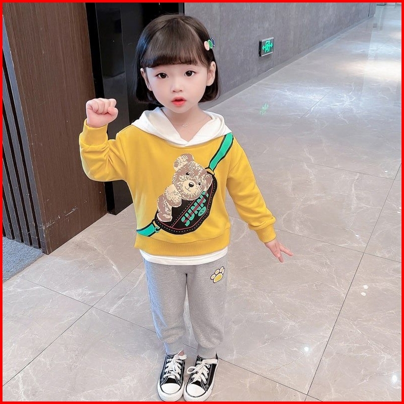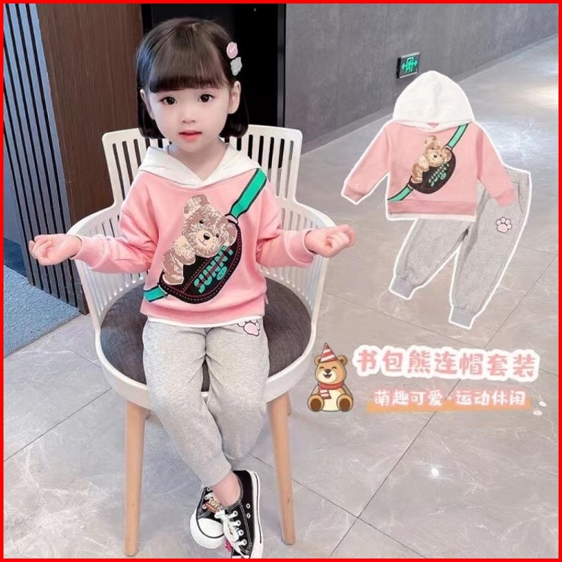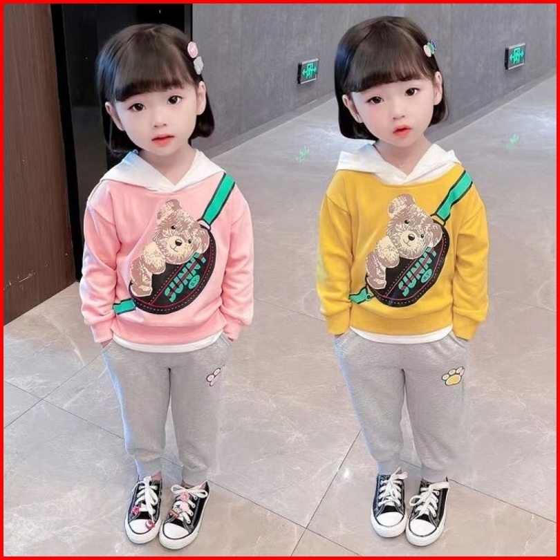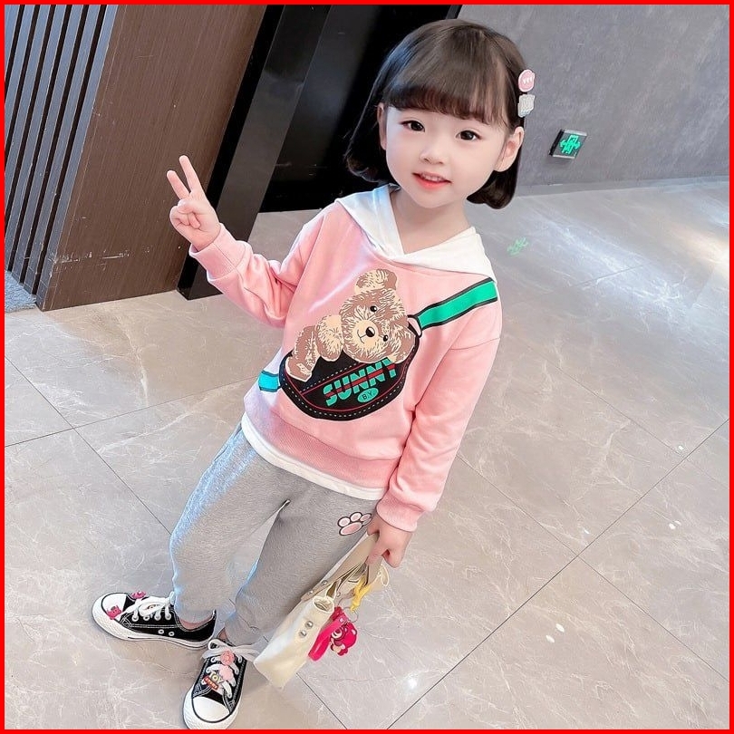 Promo Baju 2in1 Anak Perempuan Import 2-6 Tahun Setelan Hoodie Sunny With Bag