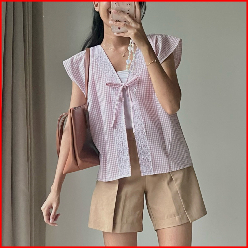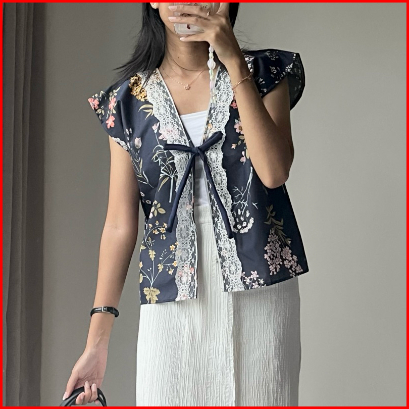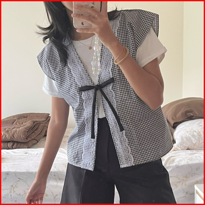 Ethereal - Lace Vest - Motif Bunga Dan Gingham Kotak