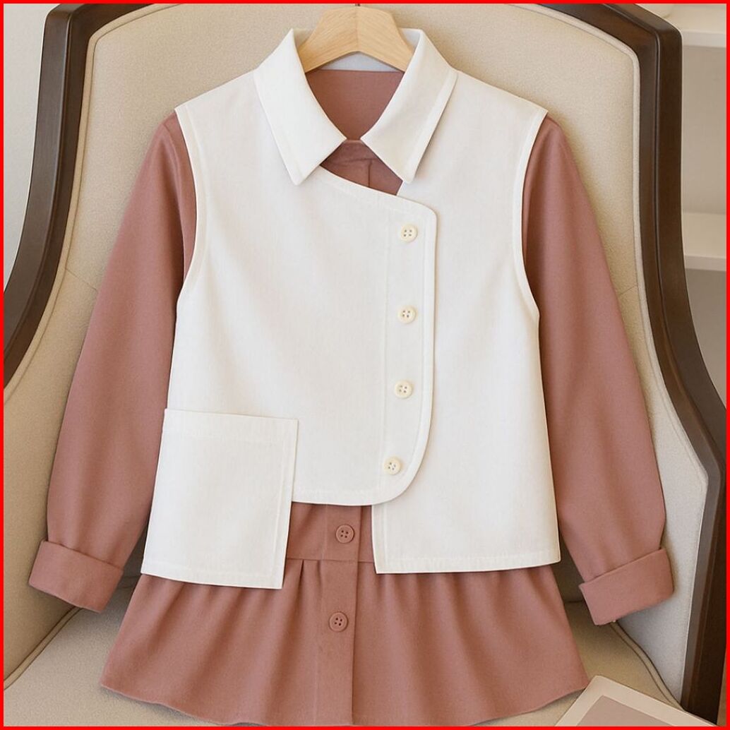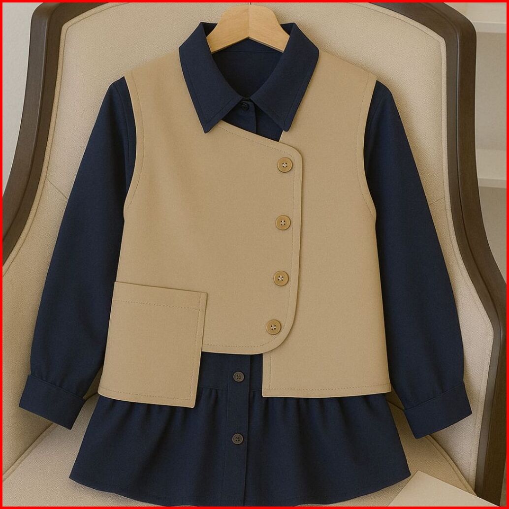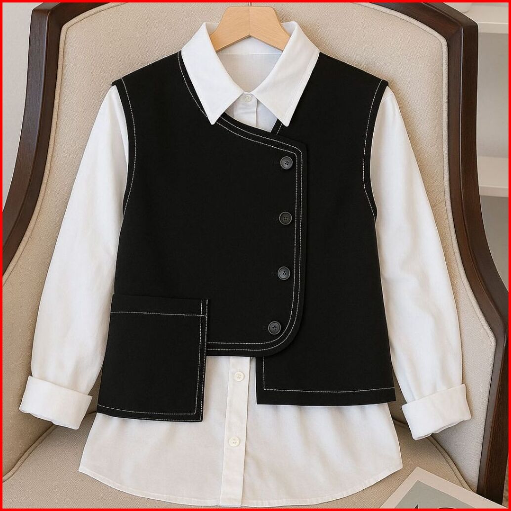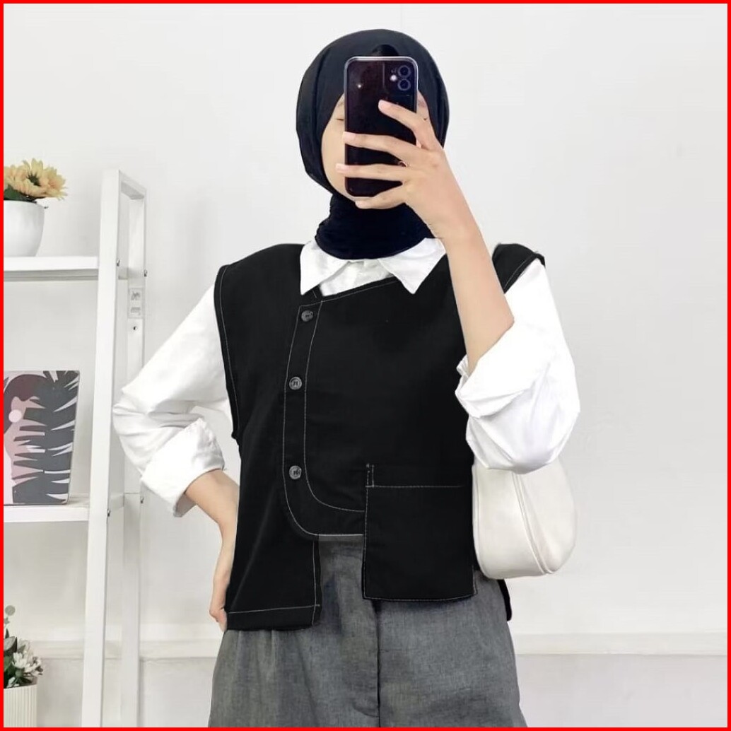 Vallina Outfit - Ghea Outer Kemeja Oversized Sleveless Woman Thania Vest Style Black White Elodie Vest Premium Rompi Wan
