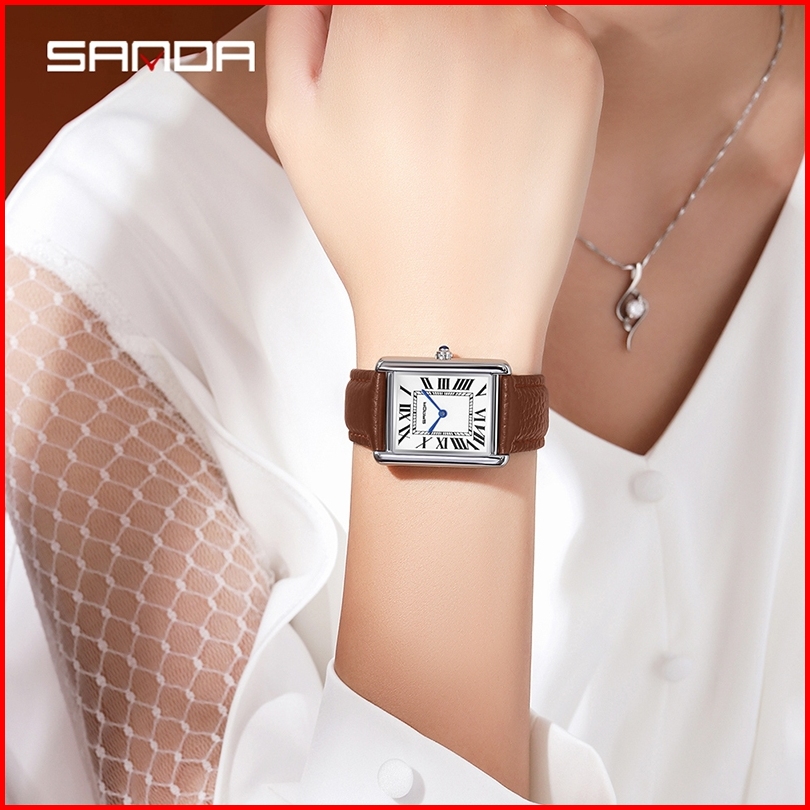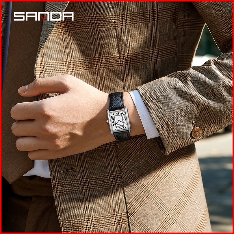 Sanda 1108 Jam Tangan Pria Wanita Analog Medium Size Retro Style Tali Kulit Quartz