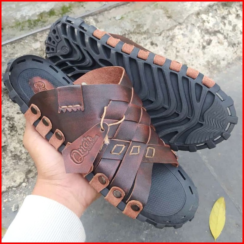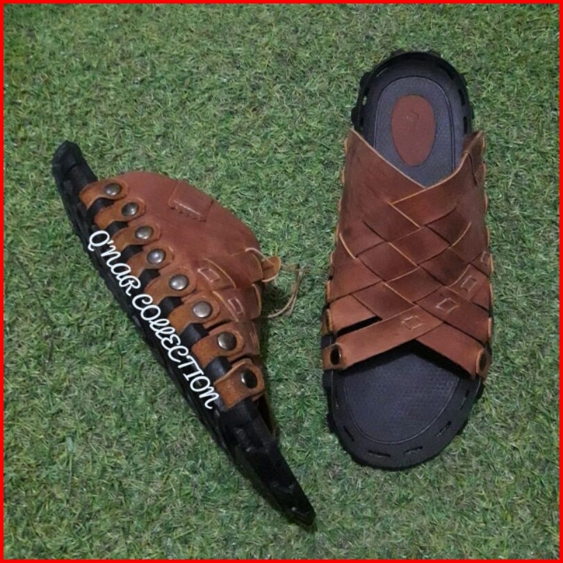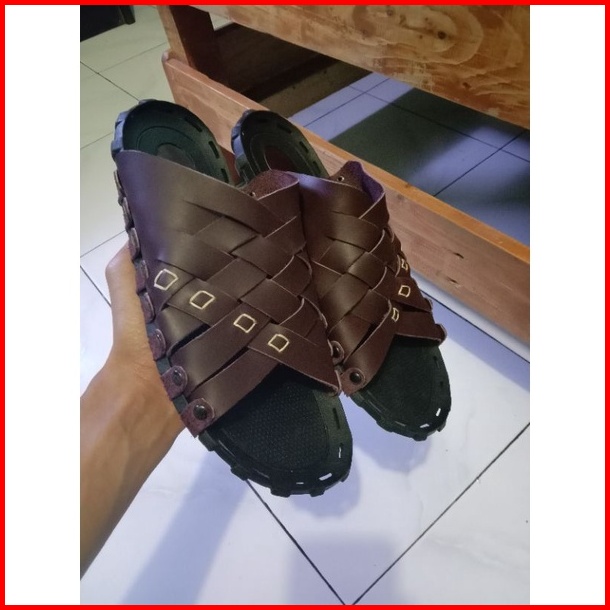 Sandal Pria Kokop Rajut Kasual Kulit Asli 100 Sol Karet Tpr Tidak Licin