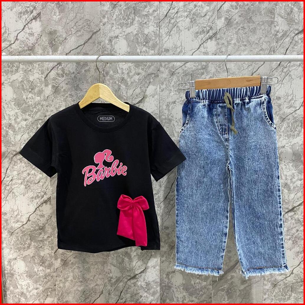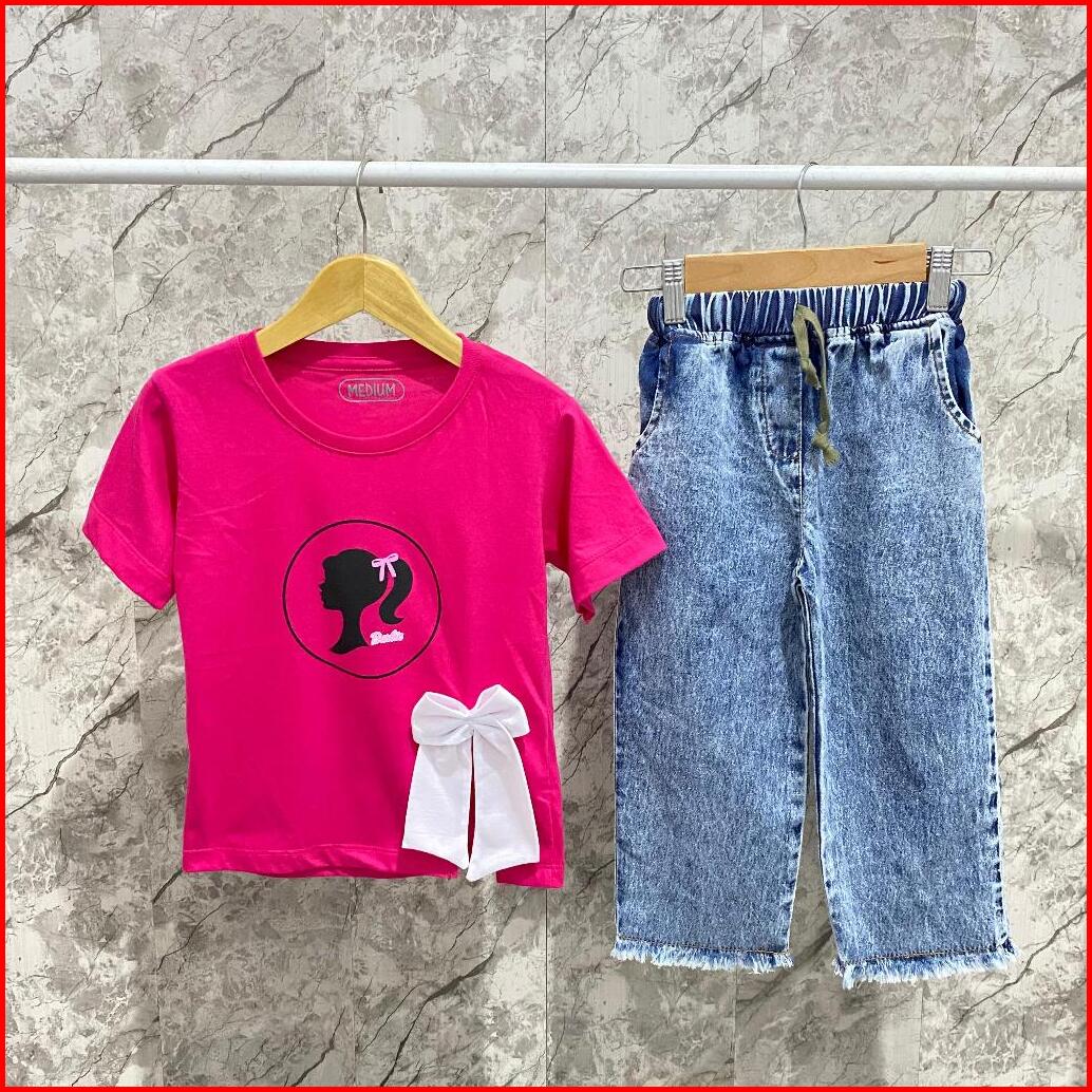 Setelan Baju Anak Perempuan Lengan Pendek Celana Kulot Usia 3-12 Tahun