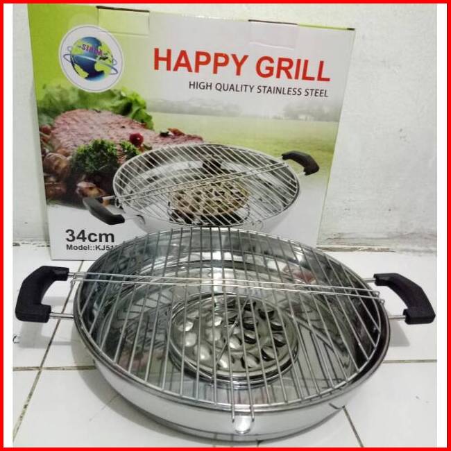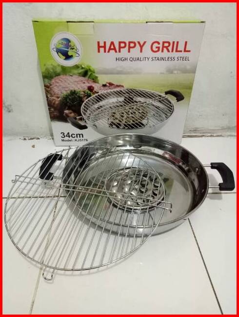 Happy Grill Pan 34 Cm Free Brush Minyak Kuas Masak Pemanggang Bbq Pan Pemanggang Daging