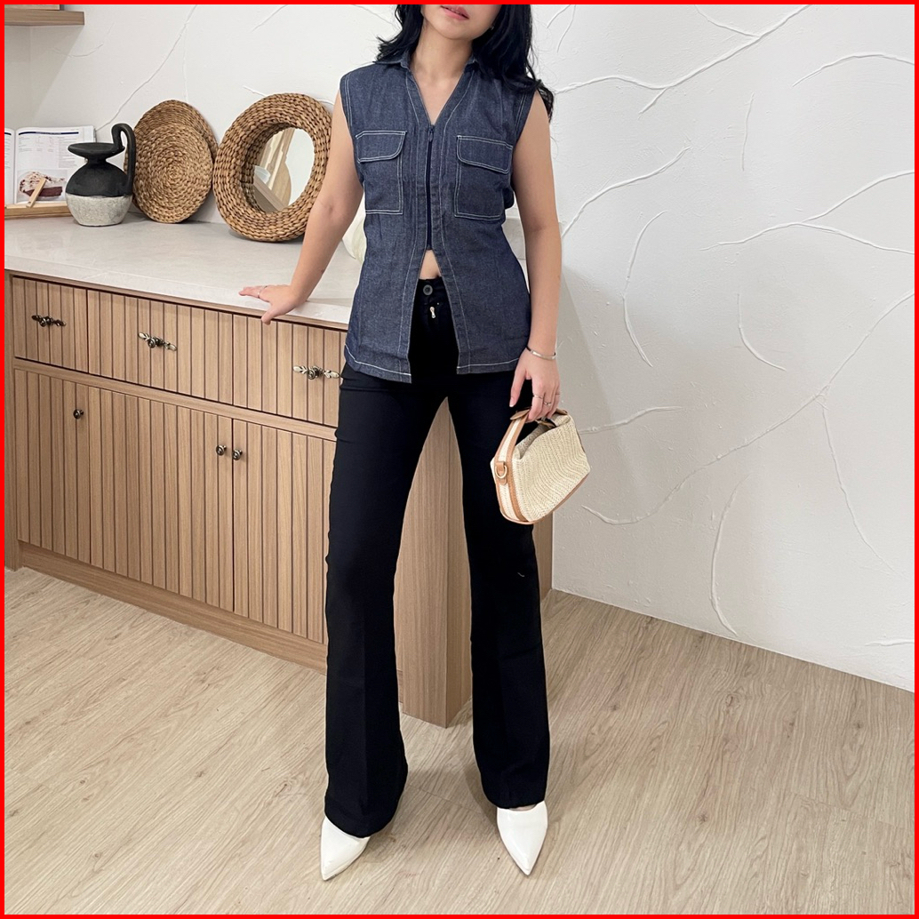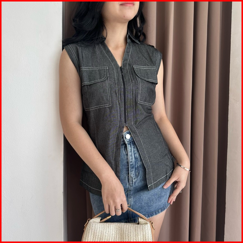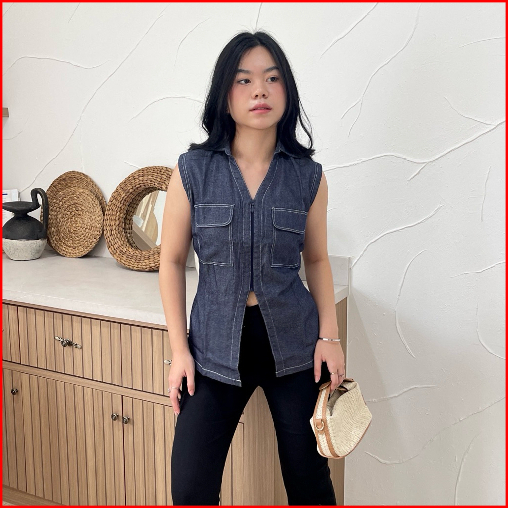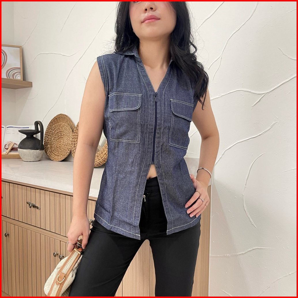 Shylo Alma Denim Vest Halter Top Jeans Atasan Denim