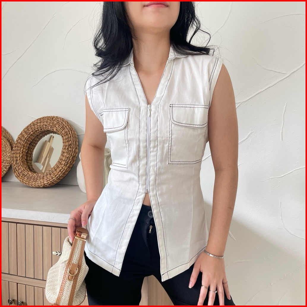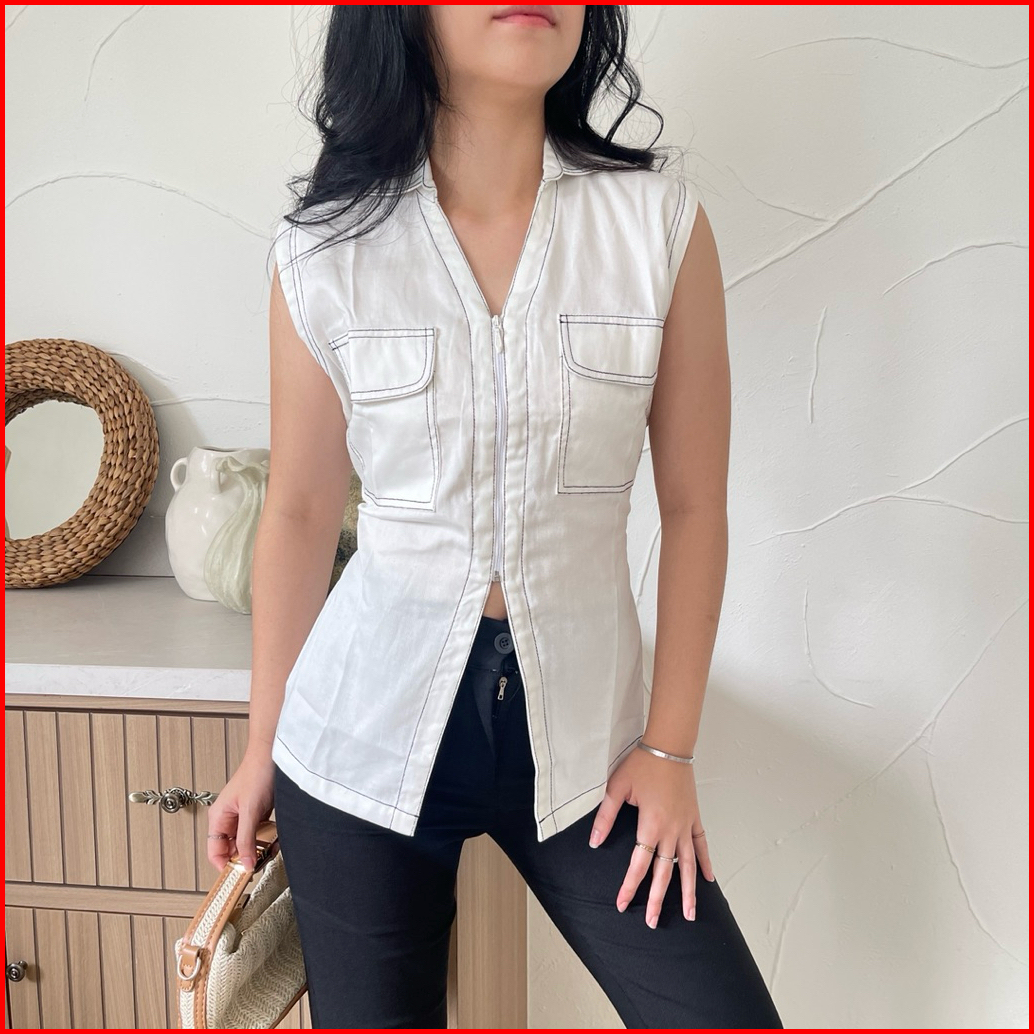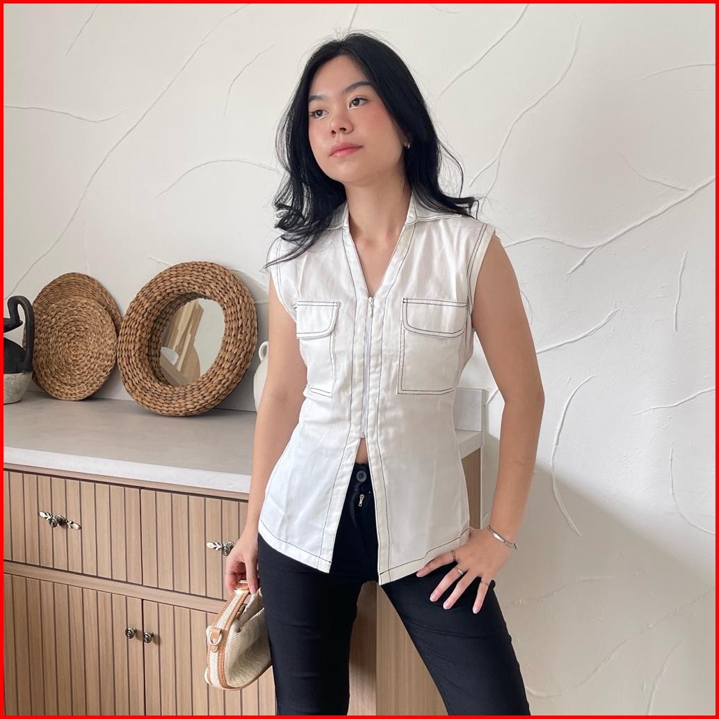 Shylo Alma Denim Vest Halter Top Jeans Atasan Denim