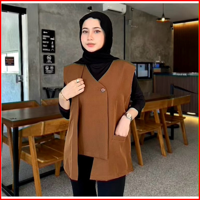 Hanny Vest Outer Rompi Wanita Atasan Luaran Oversize Korean Style Sleeveless Top Kekinian