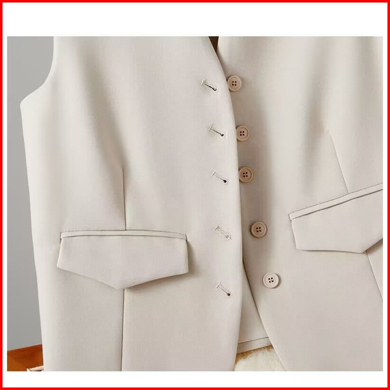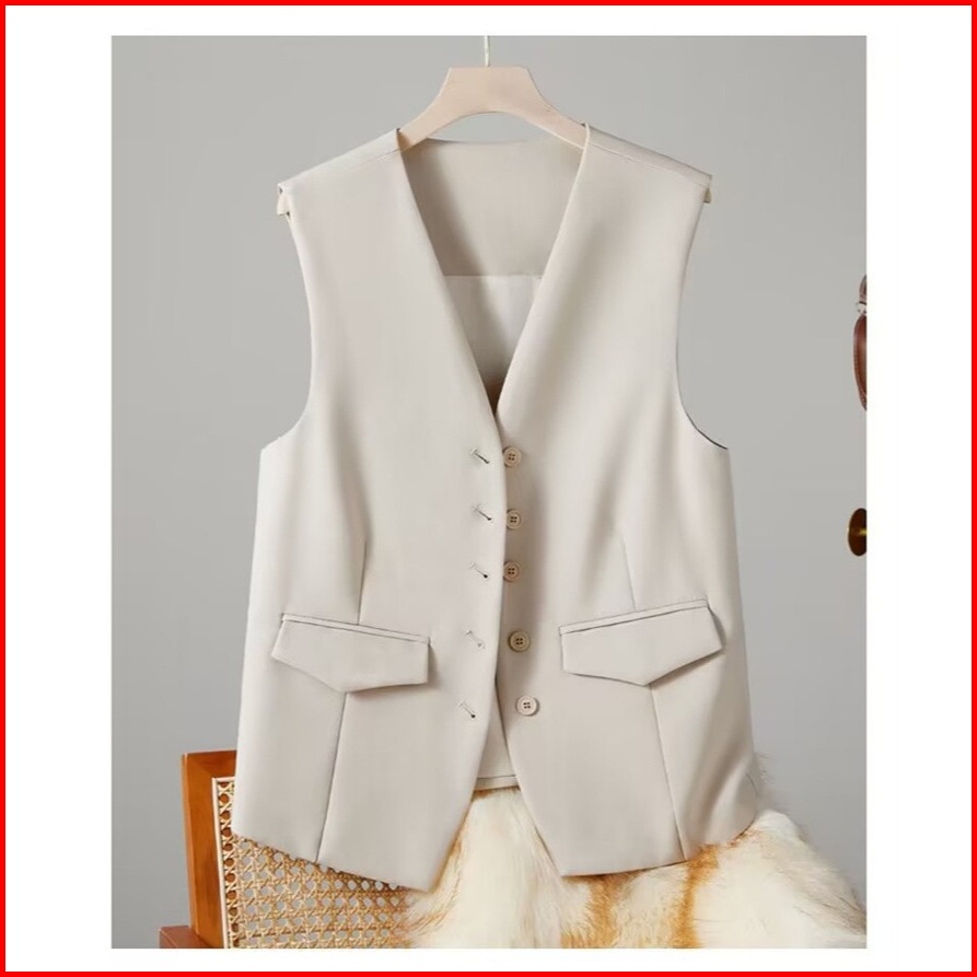 Rompi Wanita Model Vest Kancing Premium Motif Polos Putih Rompei V-neck