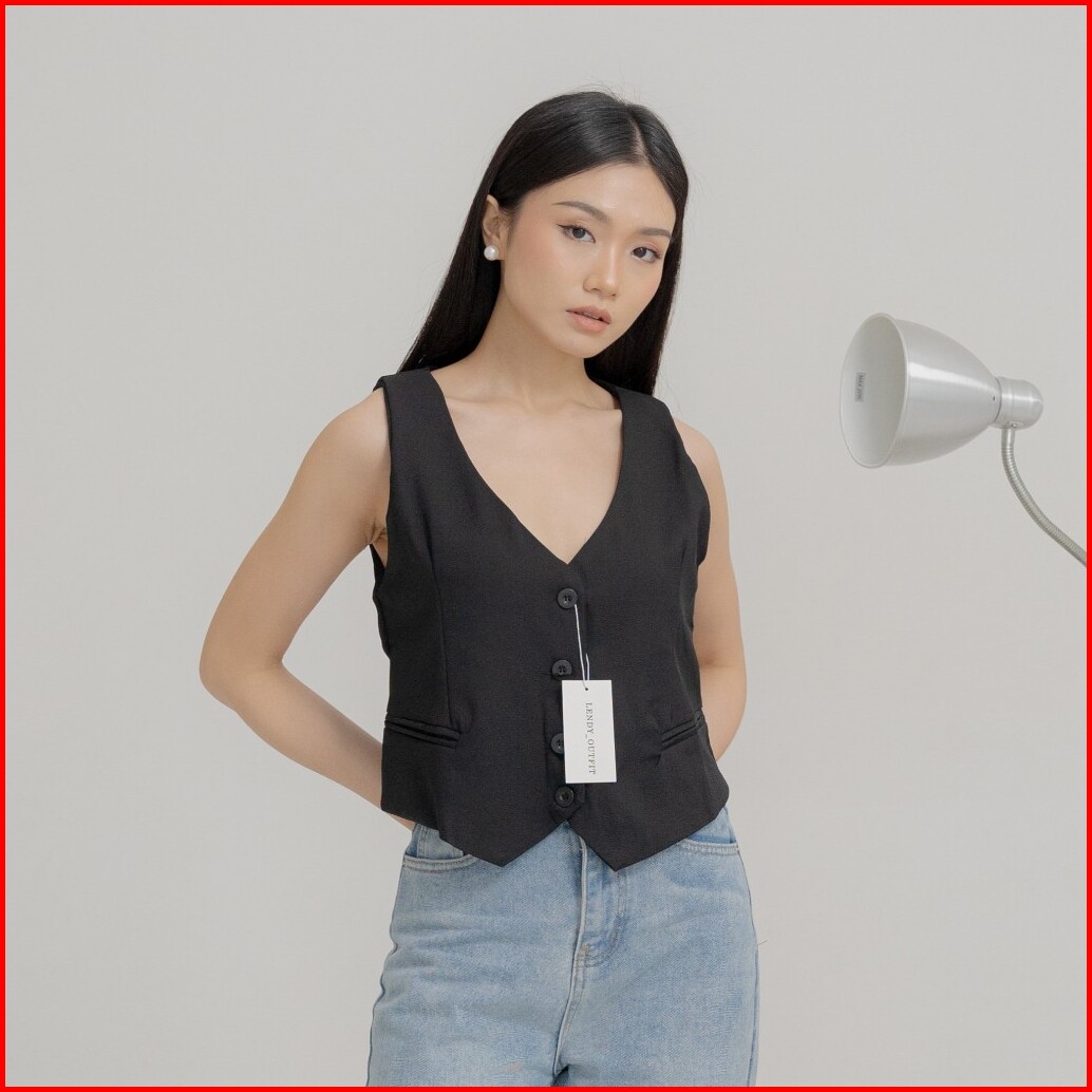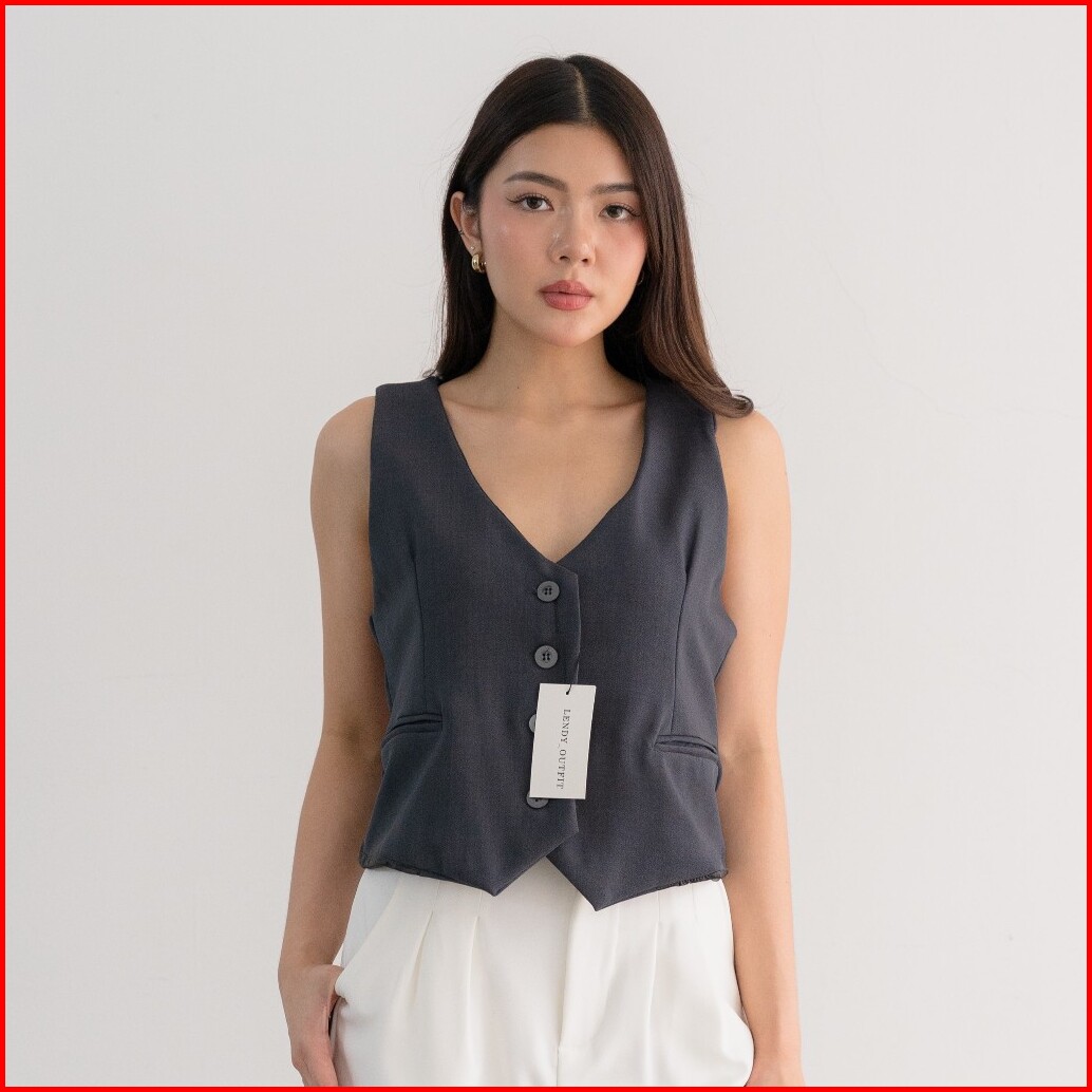 Atasan Wanita Vest V-neck Rompi Premium Basic Top Vest Outer E.194