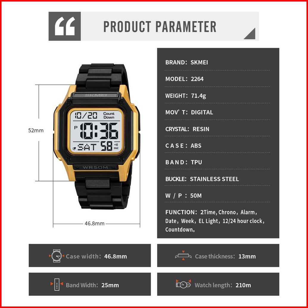 Jam Tangan Pria Digital Skmei 2264 Water Resist Original