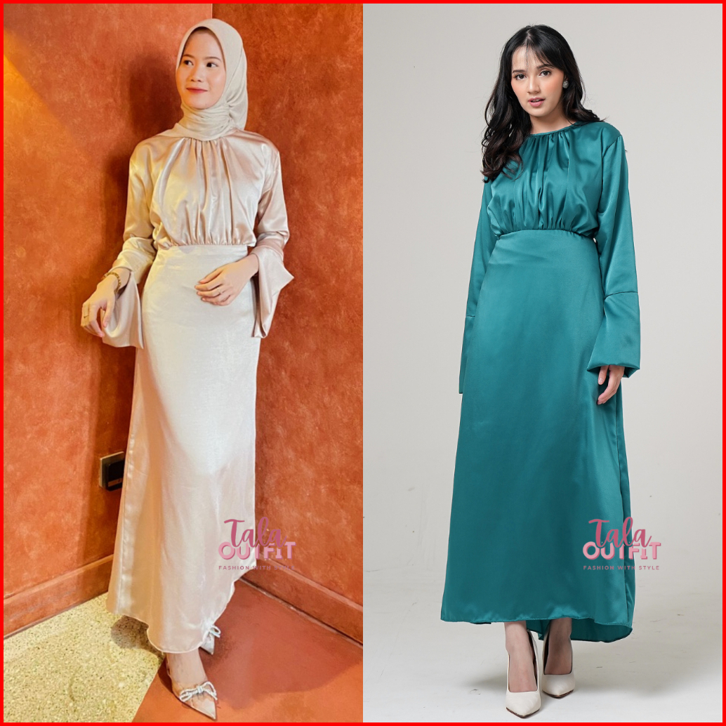 Naya Dress - Dress Duyung Korean Style Fashion Muslim Shimer Gamis Kondangan Dres Satin Silk Premium