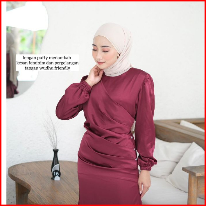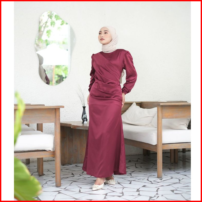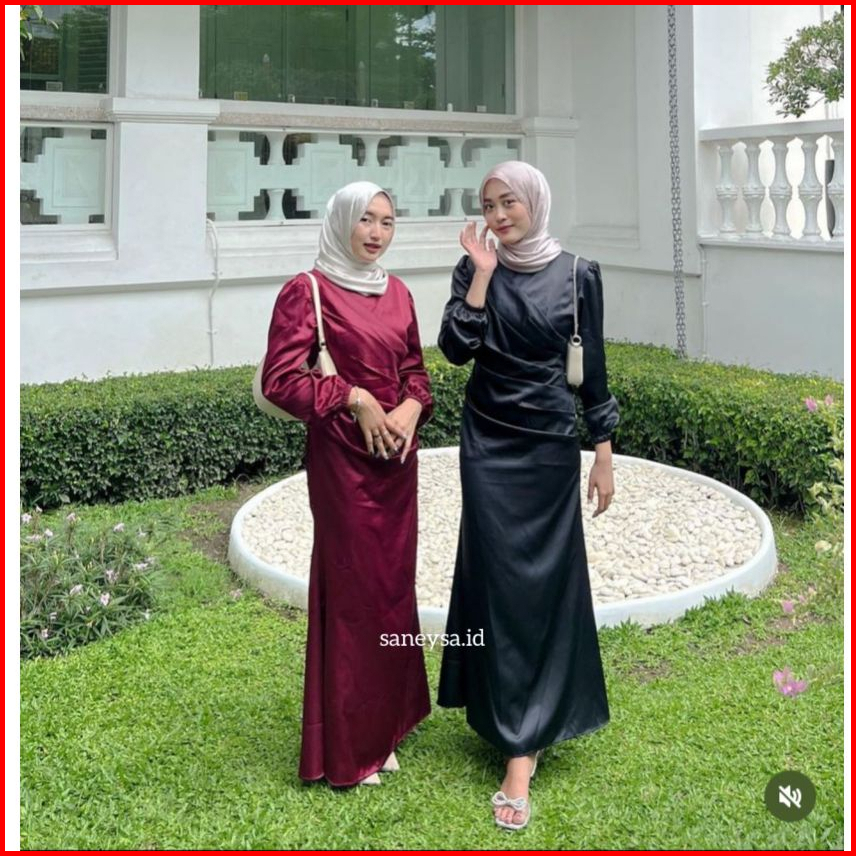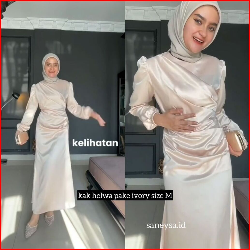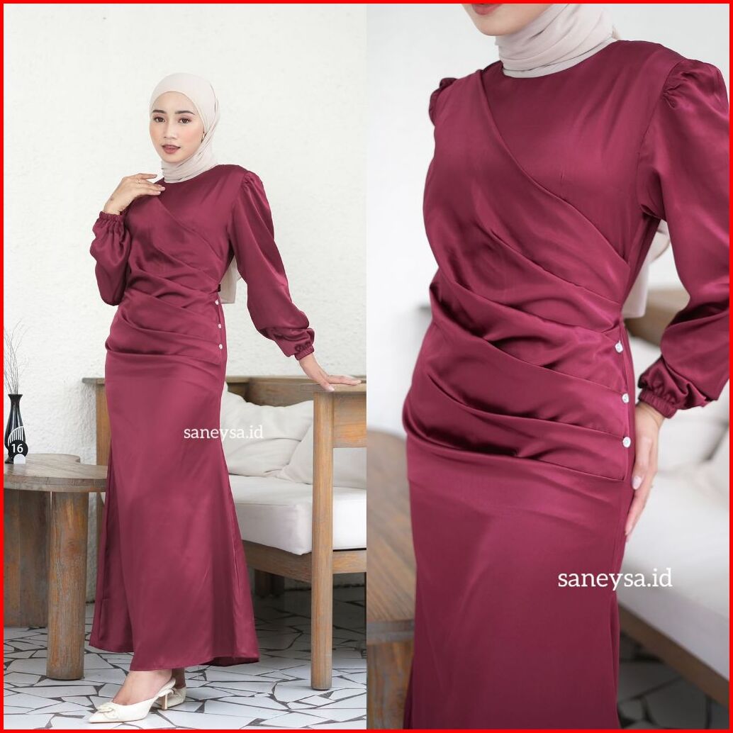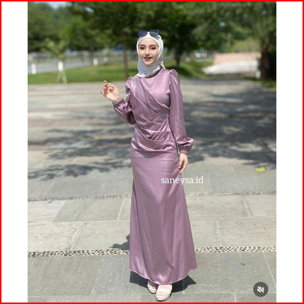 Soraya Dress Gamis Silk Satin - Dress Kondangan Lebaran Wanita - Gamis Lebaran Pesta Mewah Elegan - Dress Duyung Bridesm